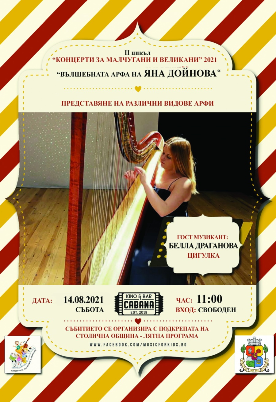 Концертът е подходящ за деца от 5 до 15 години. Присъстващите ще имат възможност да се запознаят със звука на арфата, да научат повече за нейното устройство, музикален репертоар и историческите ѝ връзки с другите музикални инструменти.