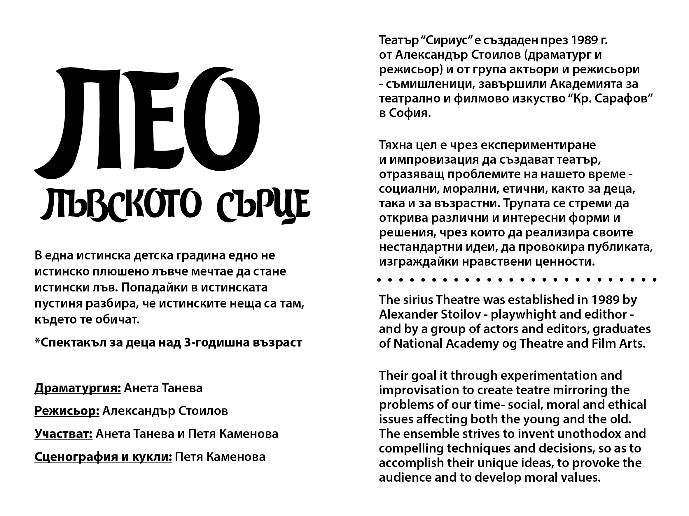"Лео-Лъвското сърце" – спектакъл за малки и големи деца