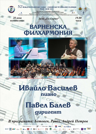 28 юни (понеделник), 19 ч. – Зала „България“ – Варненска филхармония със солист Ивайло Василев – пиано и диригент Павел Балев. В програмата: Бетовен, Равел, Андрей Петров