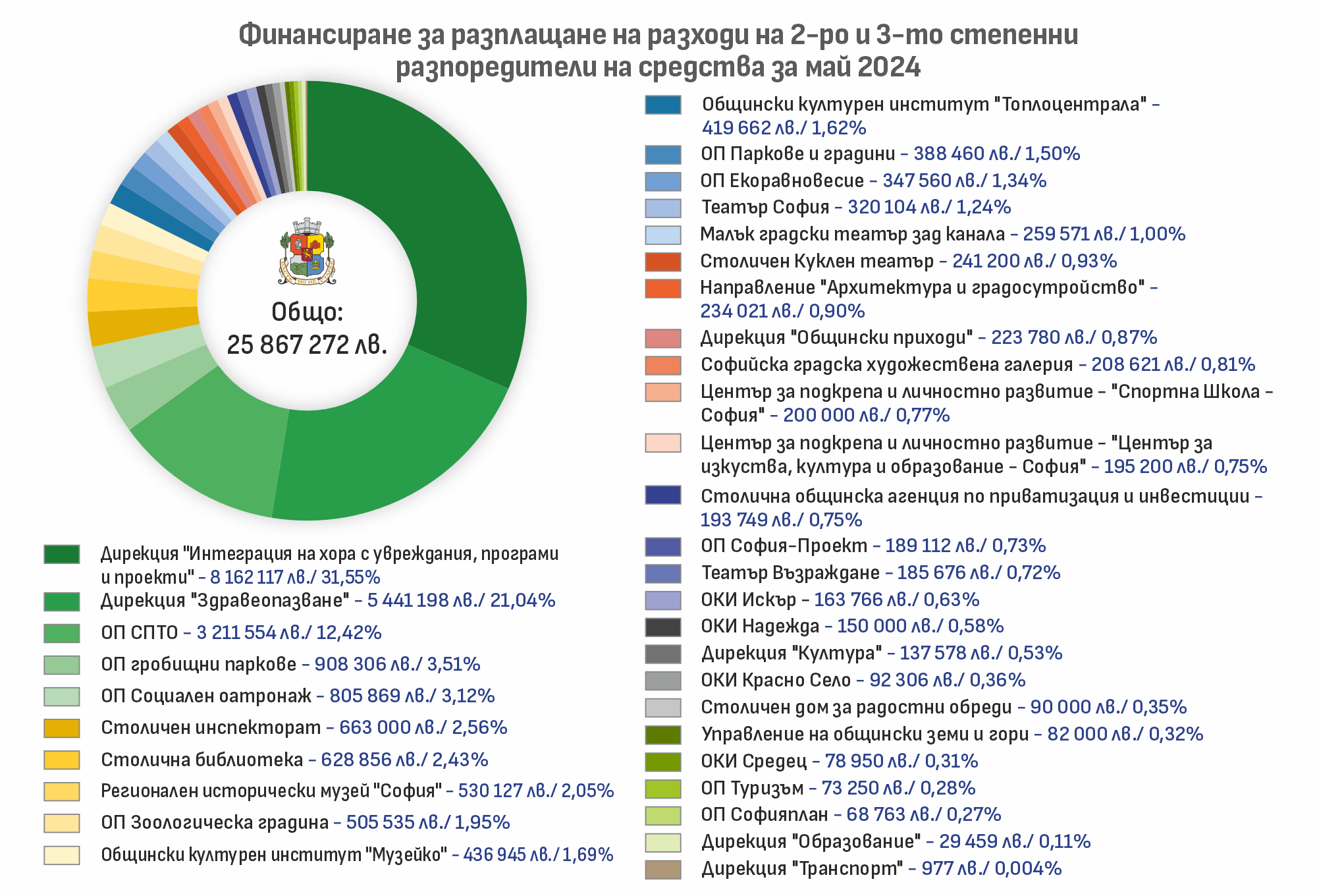 - Финансиране на разходи на второ- и третостепенни разпоредители на средства за май 2024 г.