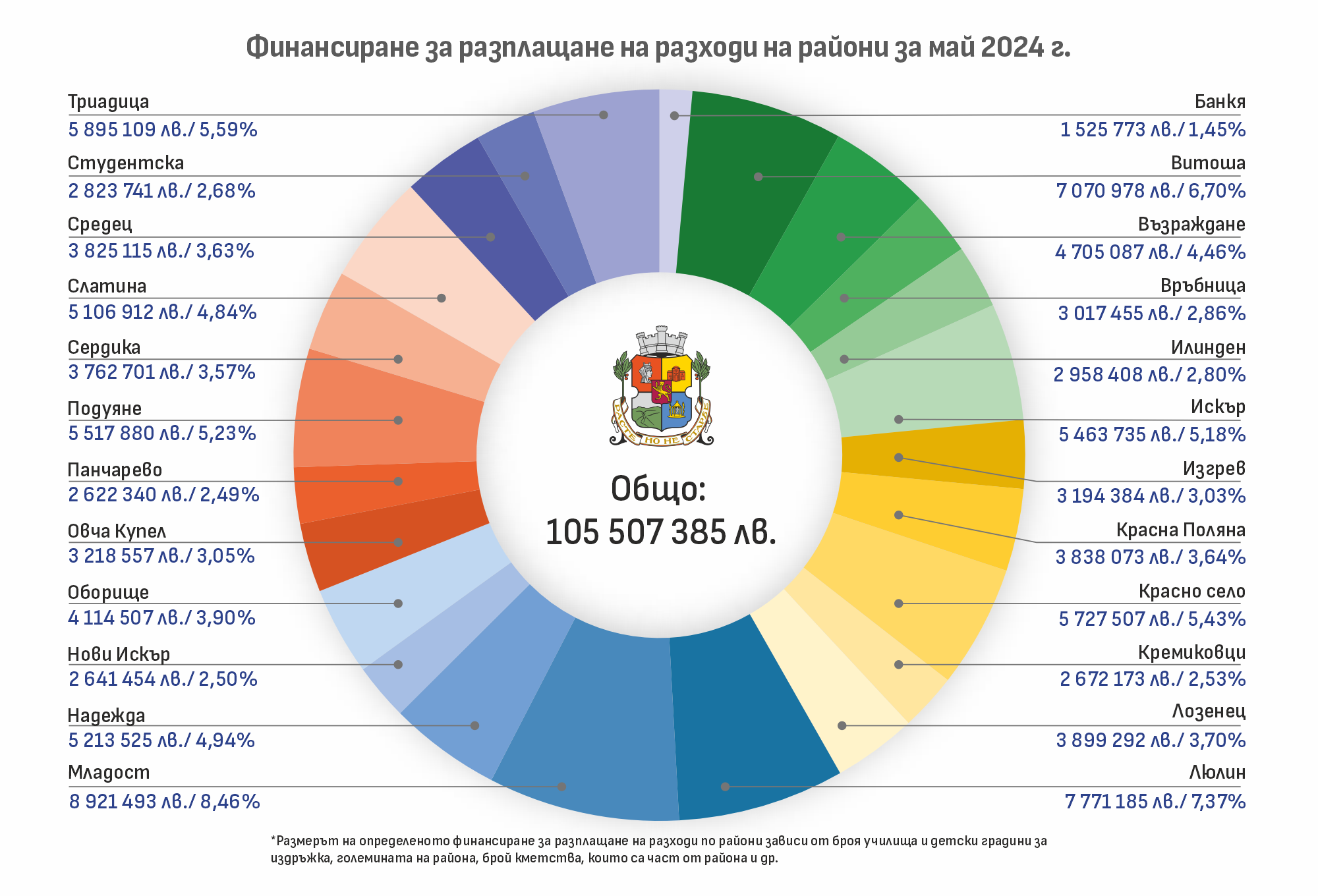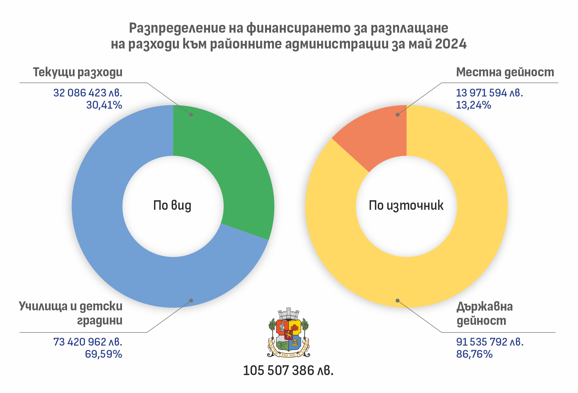 - Разпределение на финансиране за разплащане на разходи към районните администрации за май 2024 г.