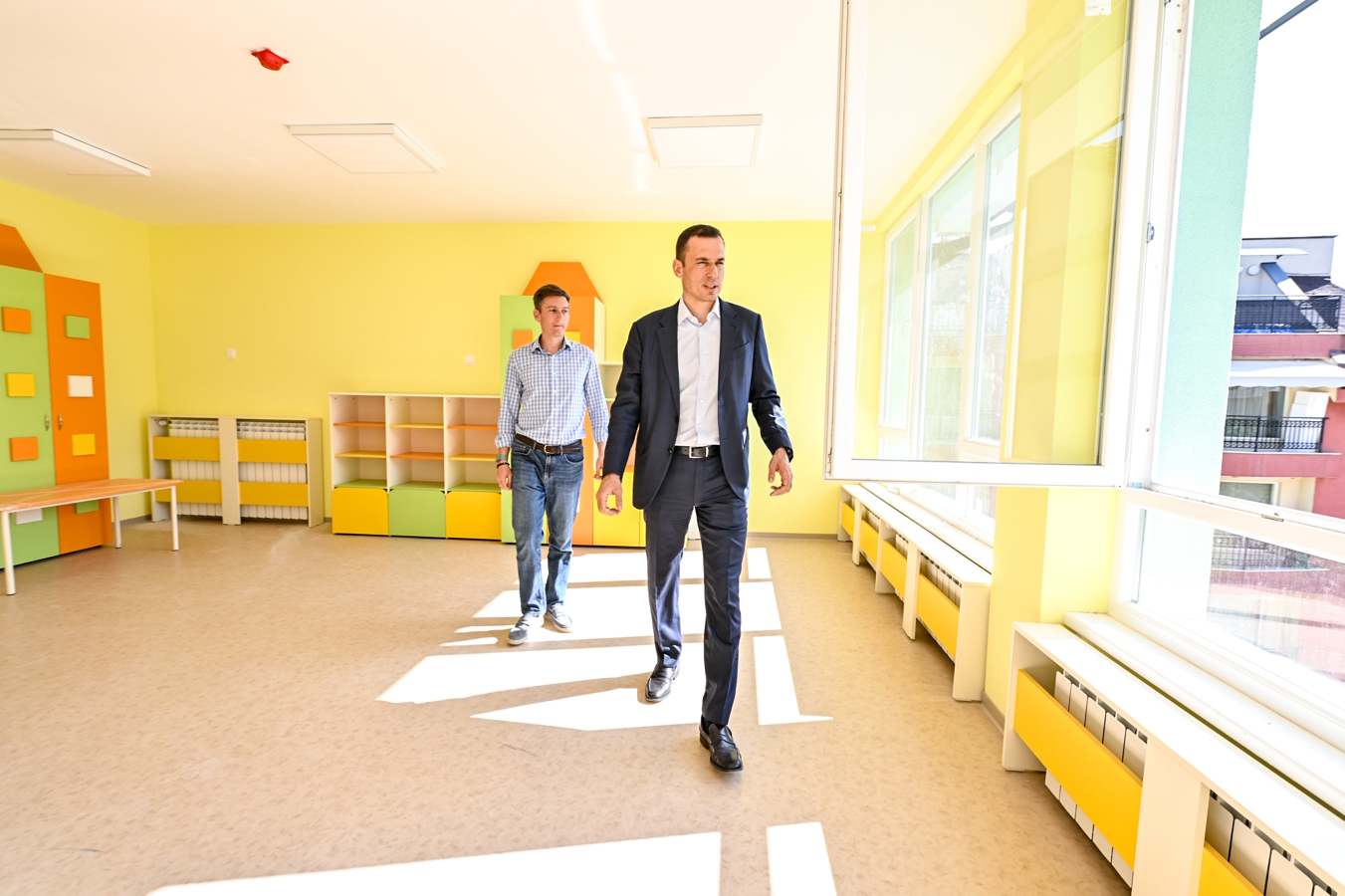 В новата сграда са изпълнени помещения за три яслени групи, както и физкултурно-музикален салон, а в двора са обособени детски площадки.