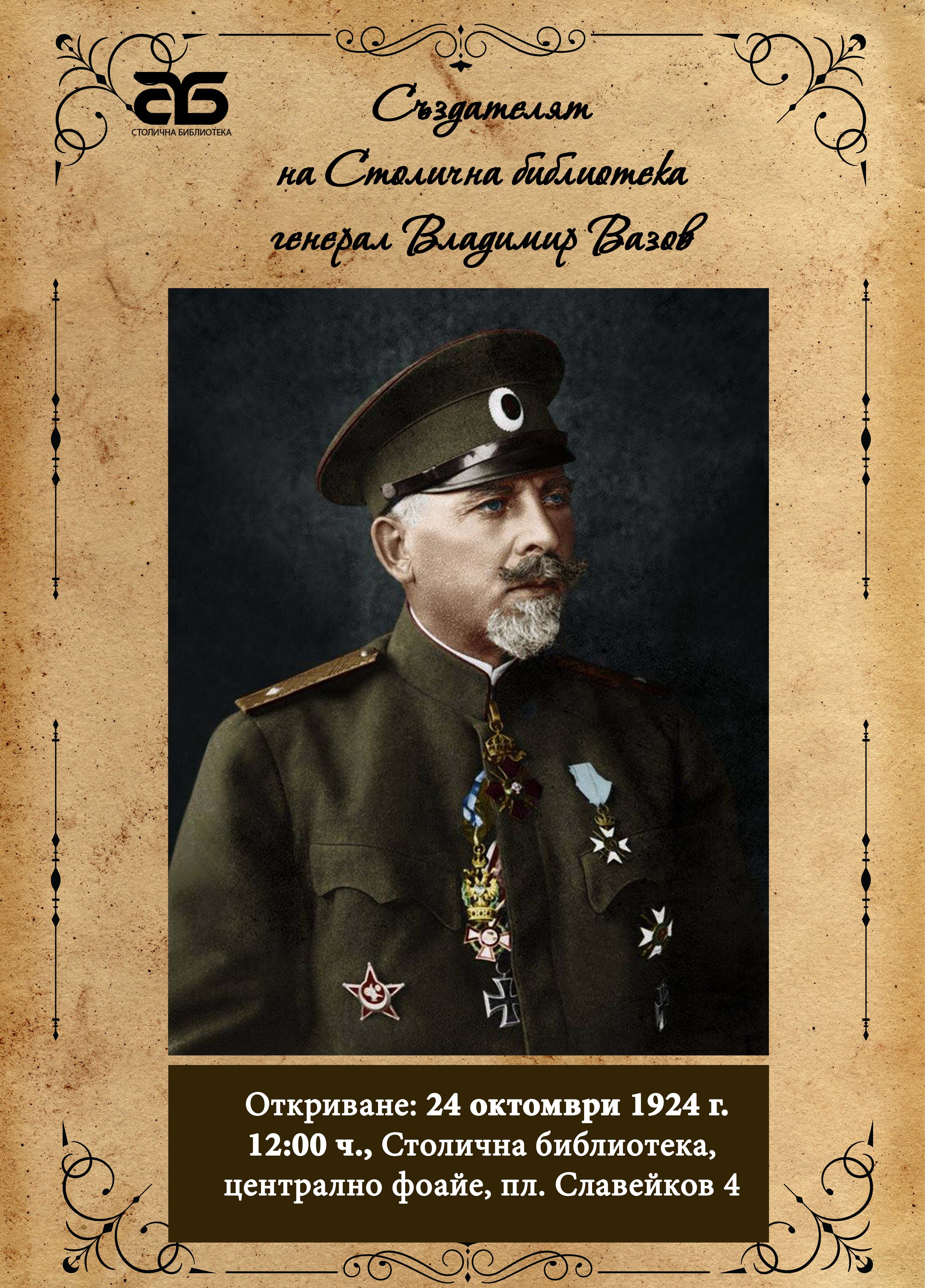 ● Най-новата фотодокументална изложба на библиотеката „Създателят на Столична библиотека – генерал Владимир Вазов” представя драматичния житейски път и бляскава военна кариера на ген. Владимир Вазов, акцентирайки на дейността му като кмет на София от 1926 до 1932 г. Посетителите могат да разгледат уникални архивни документи от фонда на Библиотеката: „Столичен общински вестник”, чийто цифров формат е достъпен в платформа “Сердика”, доклади от Владимир Вазов по проектобюджети на общината за финансовата 1929/1930, 1930/1931, 1931/1932 г., „Юбилейна книга на град София (1878 – 1928)”, „Кратък исторически преглед върху Столична община” (1932) на Ал. Тацов и Н. Тричков. Представени са успешните политики на управлението на Владимир Вазов: строежът на Рилския водопровод, развитието на транспортната мрежа в столицата, възстановяването на разрушената след атентата църква „Св. Неделя”, стрoeжът на нови училища и читалища. Именно ген. Владимир Вазов създава Общински музей с 3 отдела: музей, библиотека и архив, приемат се Правилник и Наредба за Столичната общинска библиотека и музей, а по време на кметуването му е построена сградата на Министерството на обществените сгради, пътищата и благоустройството на пл. "Славейков", където днес се намира Столичната библиотека.