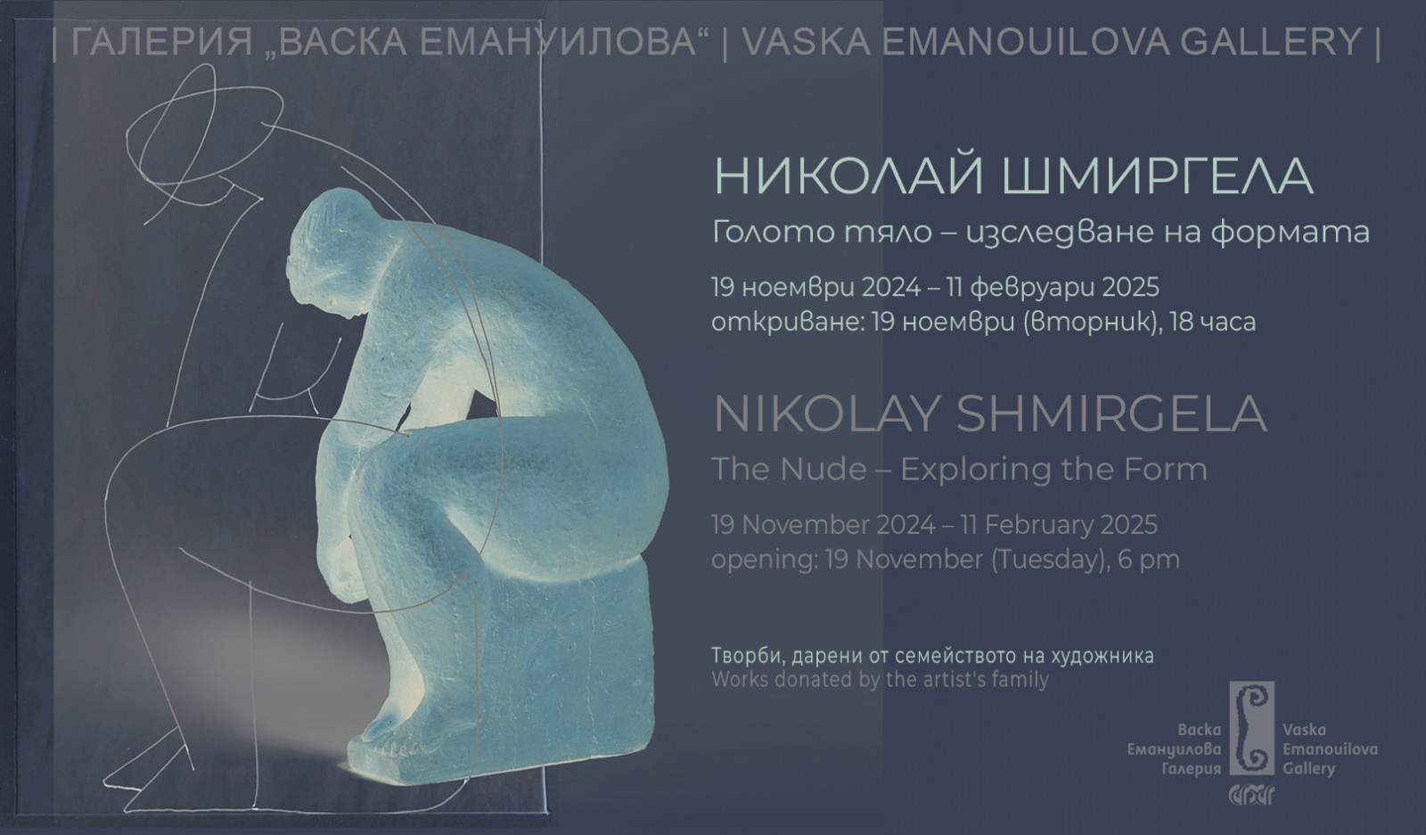 "Николай Шмиргела. Голото тяло – изследване на формата" е изложба, която проследява пластичните търсения на автора в края на 60-те и началото на 70-те години на XX век.