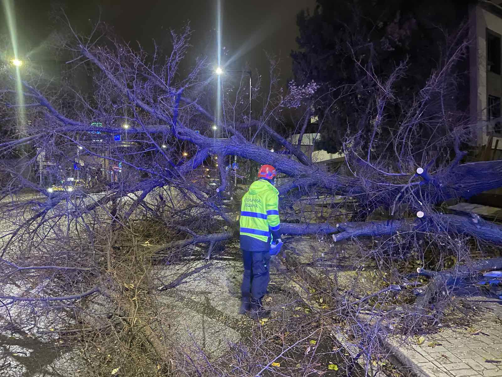 Аварийните екипи на Столичната община са реагирали на близо 20 сигнала за паднали клони и дървета през нощта. По-голямата част от постъпилите сигнали са от кварталите: "Драгалевци", "Симеоново", "Овча купел", "Павлово", "Горна баня" и др. През системата 112 са постъпили сигнали за паднали клони и дървета, метални огради на строителни обекти и др. общо 51 бр. сигнали. Аварийните екипи продължават да са на терен и ще премахват падналите клони в тревните площи и междублоковите пространства в светлата част на деня. Друга част от сигналите са поети от Пожарна безопасност и защита на населението.