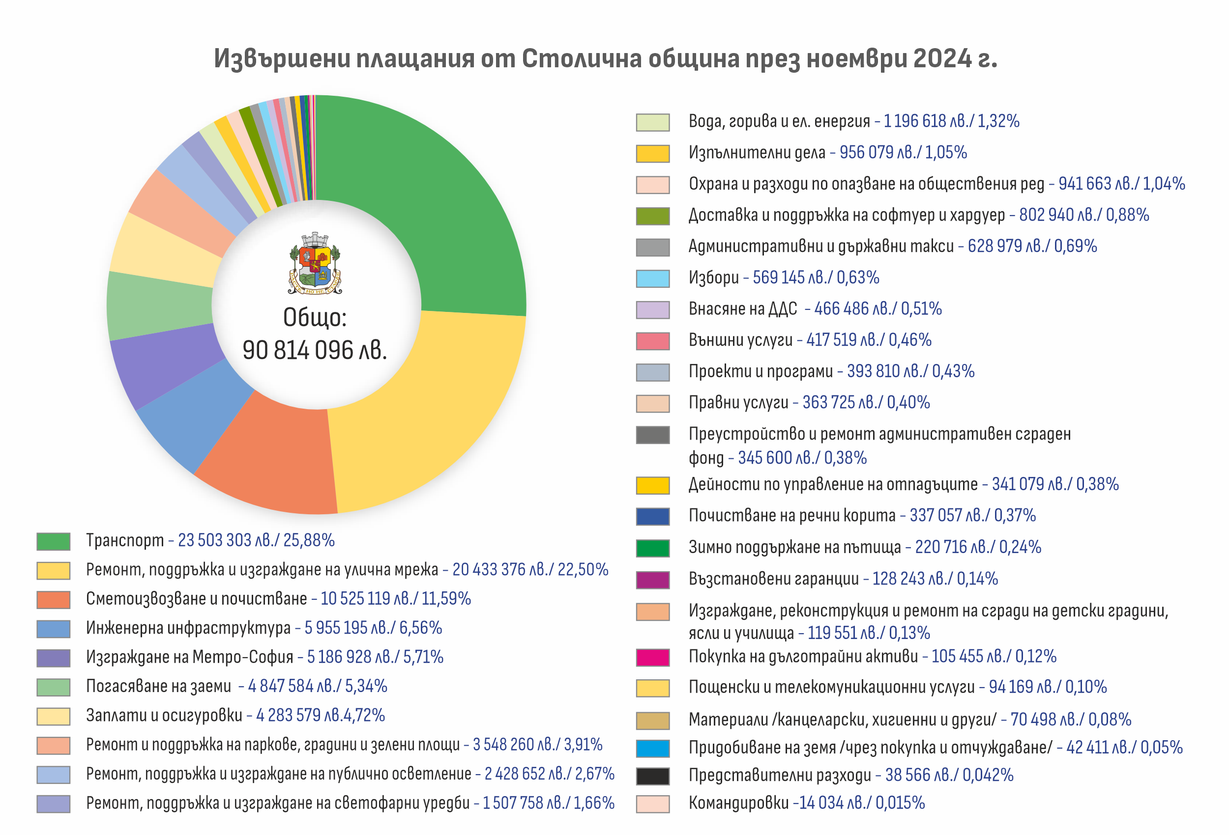 Столичната община публикува информация за всички разплащания, извършени за ноември 2024 г.