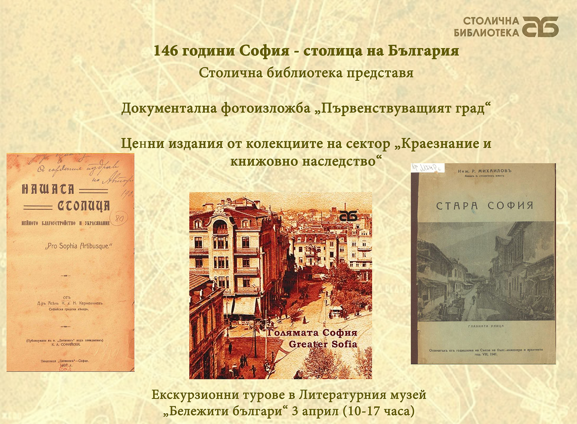 Столичната библиотека отбелязва празника с документална изложба „Първенствуващият град“ и екскурзионен тур с награди в Литературния музей „Бележити българи“