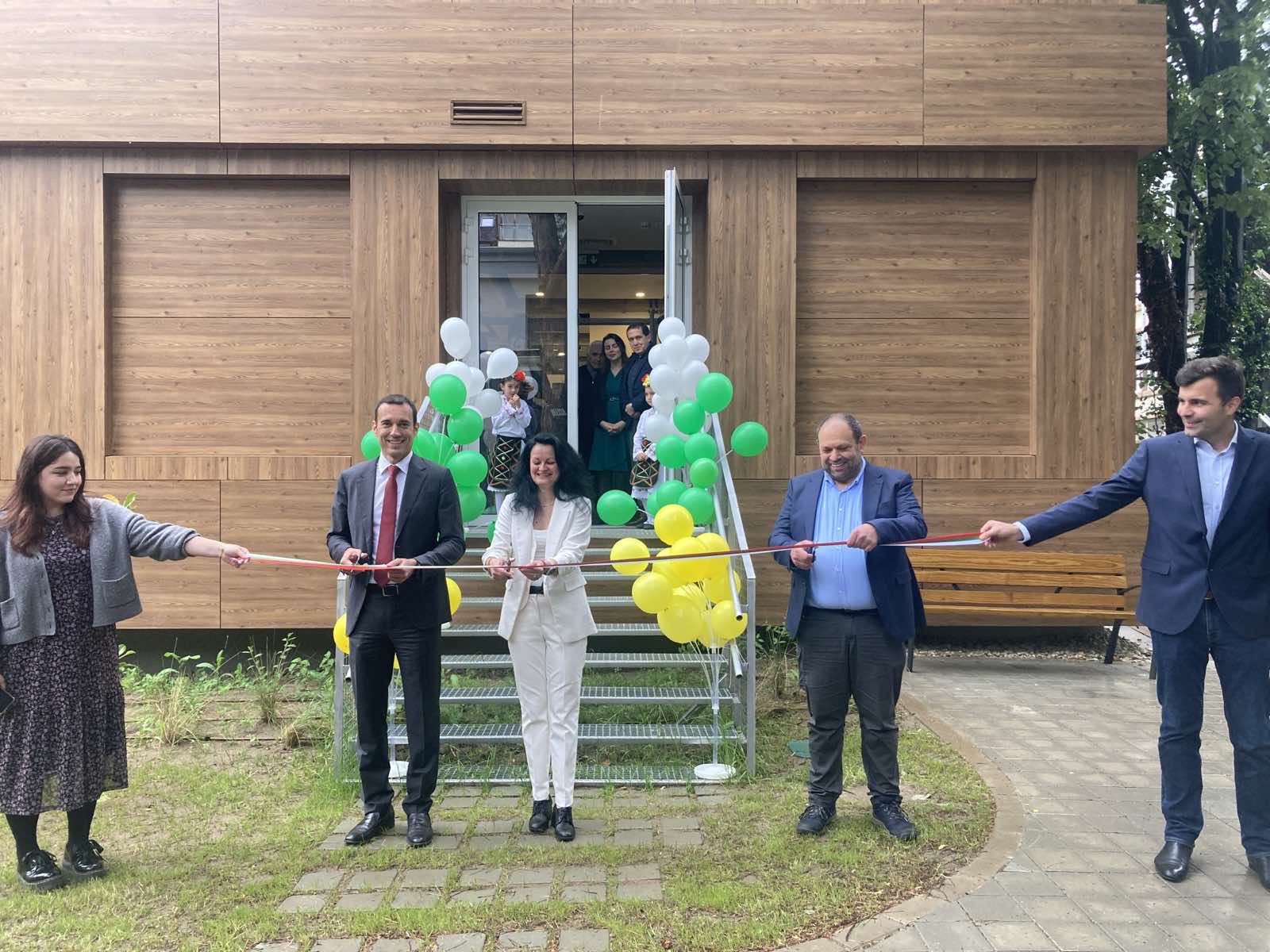 Новопостроената сградата е на два етажа и в нея има просторен физкултурно-музикален салон, в който децата ще играят и спортуват.