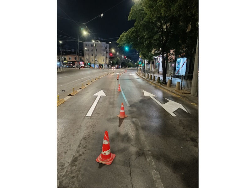 Нова маркировка вече е положена на ключови транспортни артерии като булевардите „Цар Освободител“, „Христо Ботев“, „Скобелев“, част от „Т. Каблешков“, „Партений Нишавски“ и други.