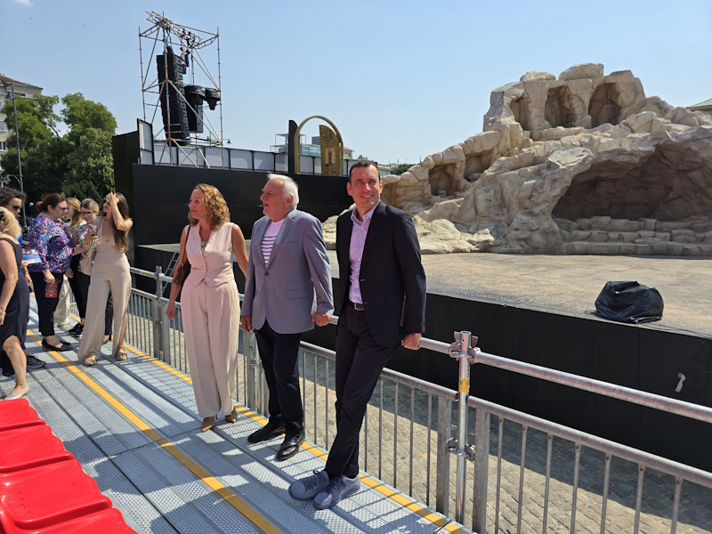 Кметът на София Васил Терзиев посети новата сцена на Софийската опера пред храма „Свети Александър Невски“ и заедно с акад. Пламен Карталов разгледа трибунитe, изградени за предстоящите спектакли на "Опера на площада".