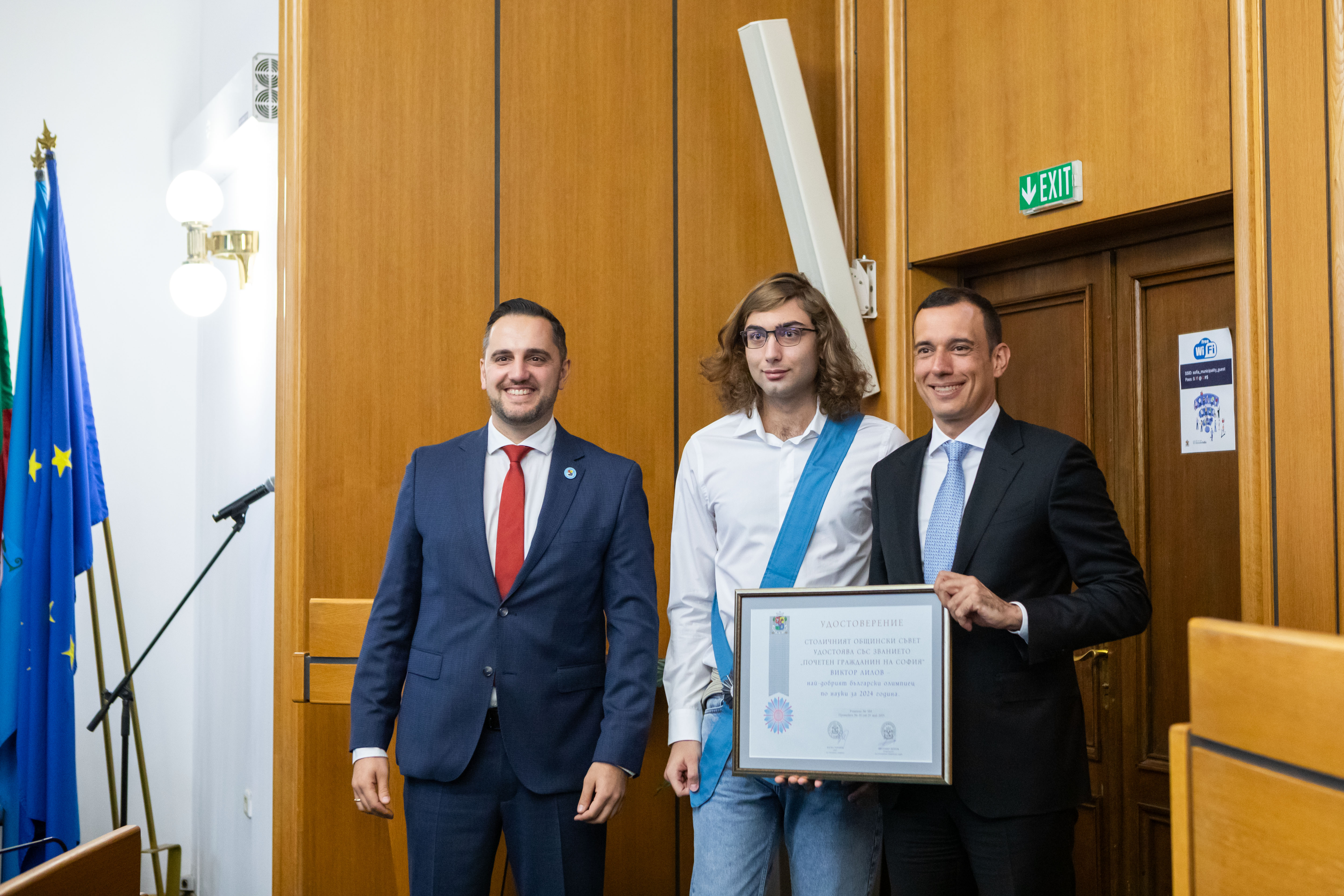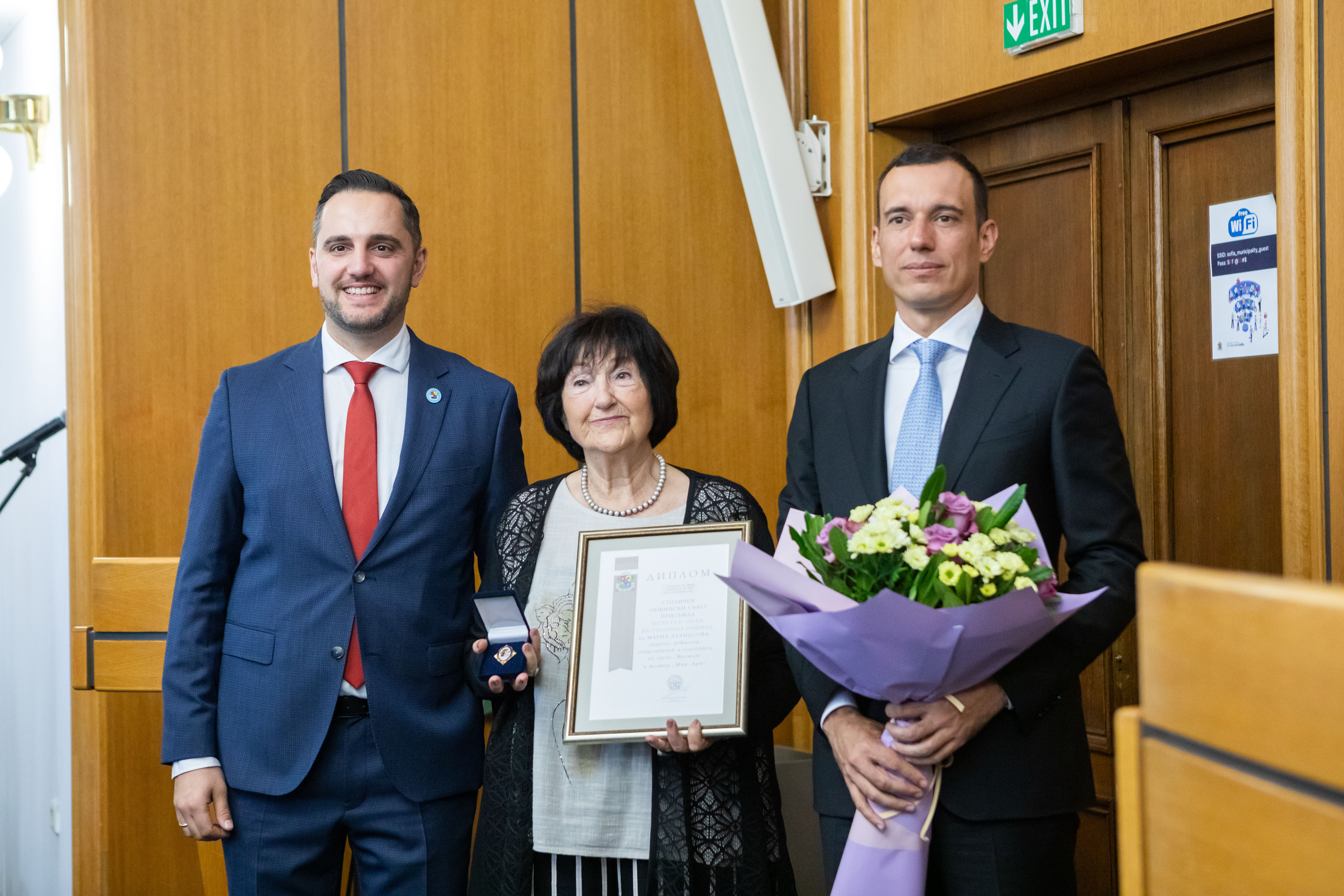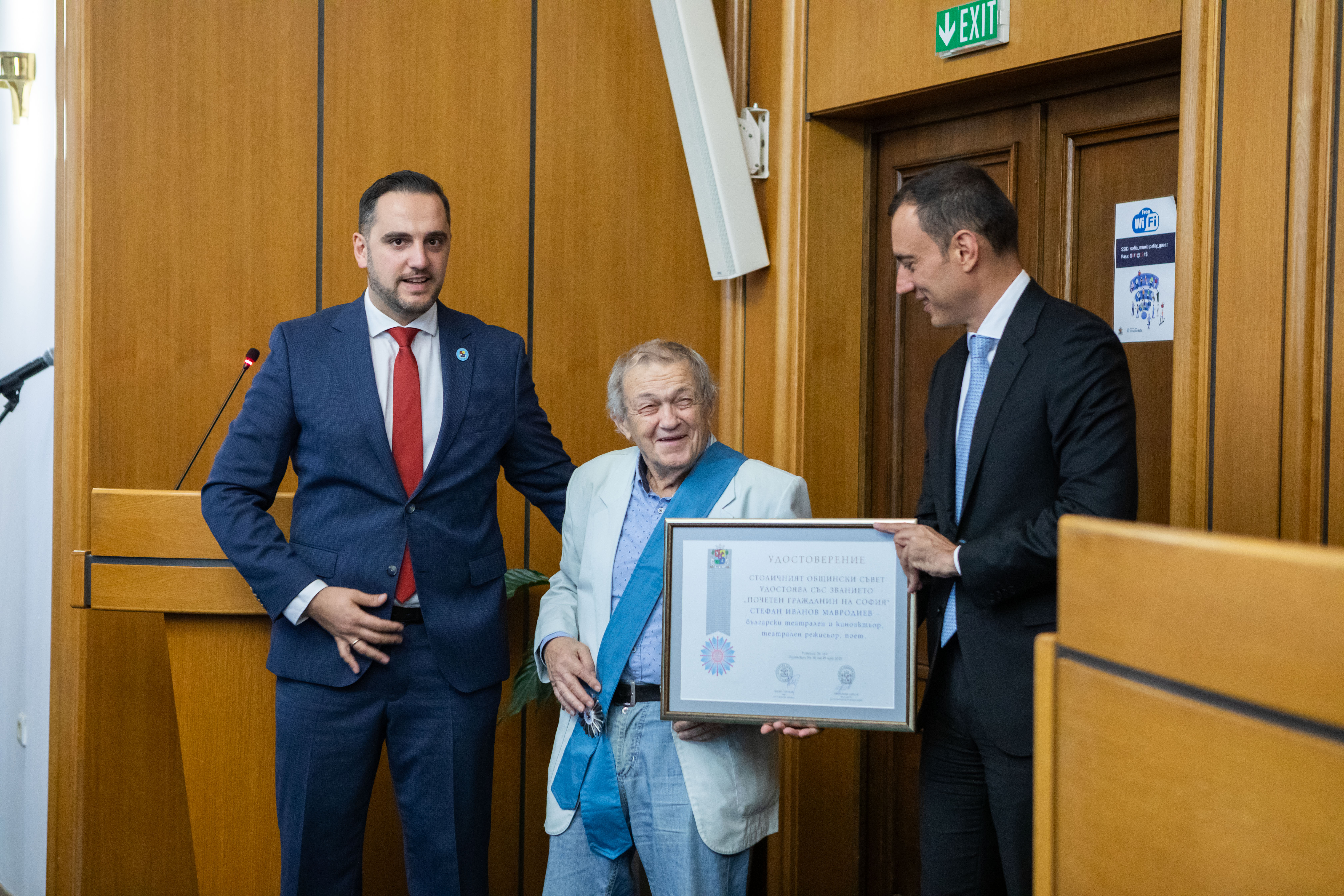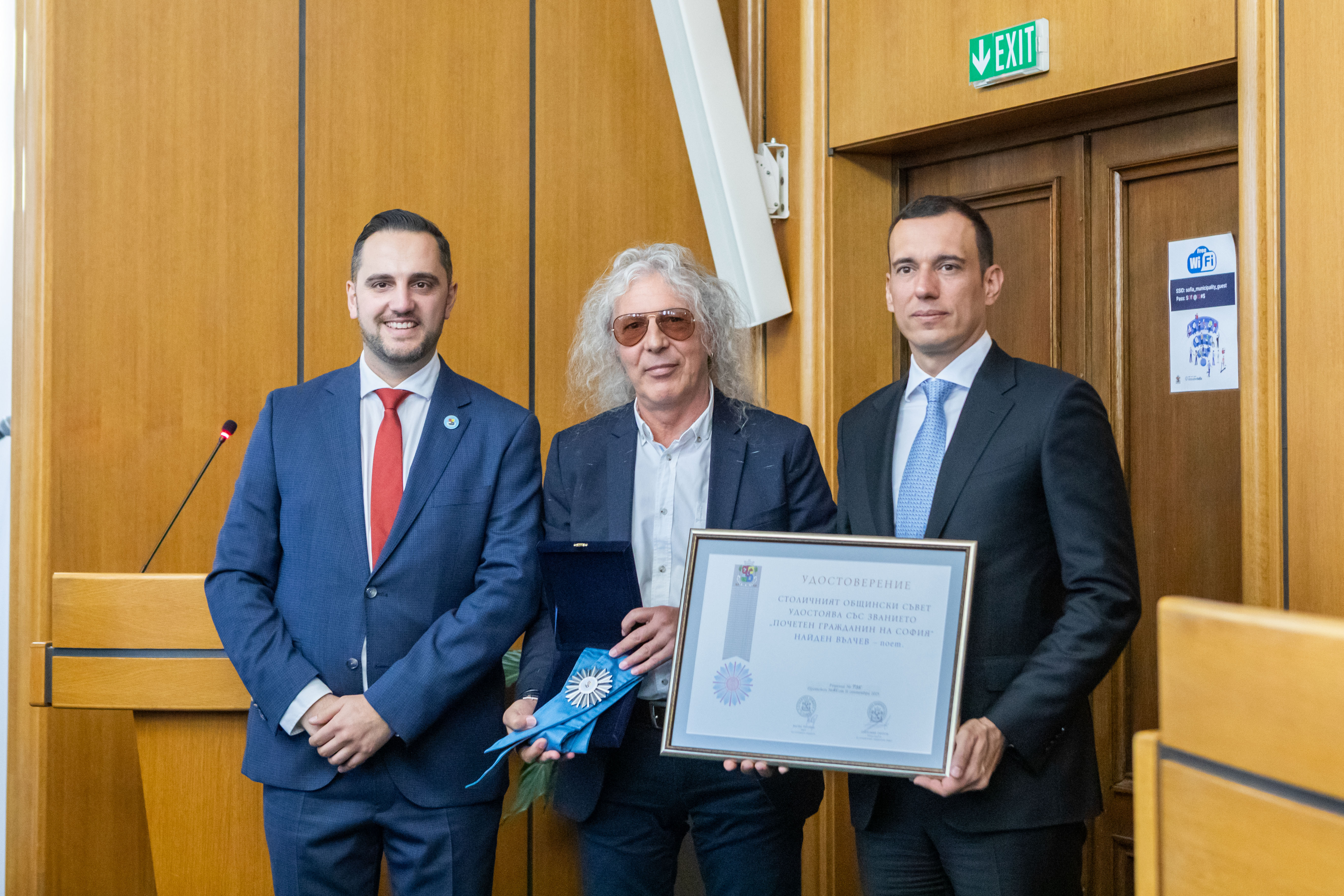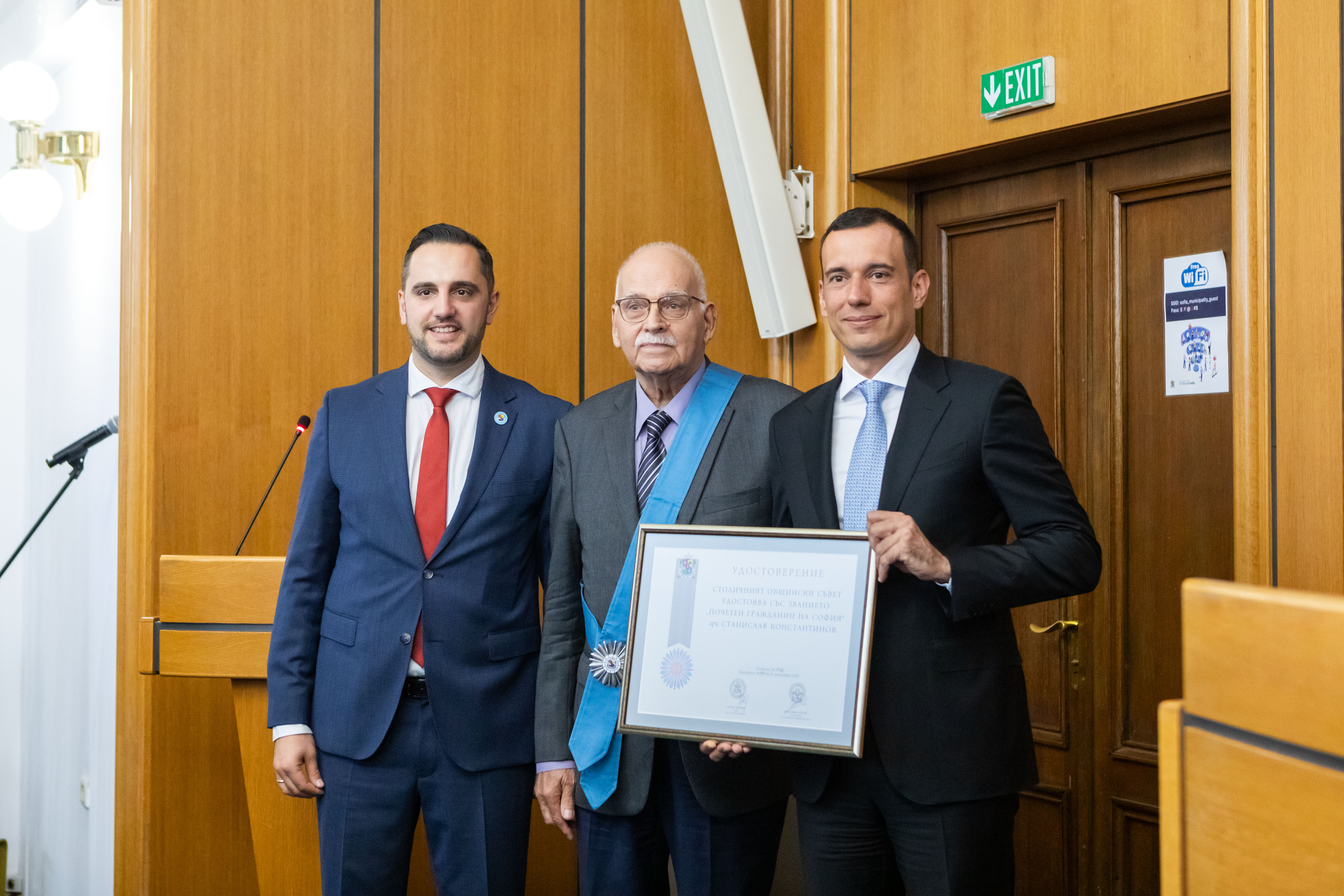 На тържествена сесия на Столичния общински съвет кметът на София Васил Терзиев и председателят на Общинския съвет Цветомир Петров връчиха отличията „Почетен граждани на София“ и „Почетен знак“ на общо 15 изявени в различни области личности, които са допринесли с таланта и постиженията си за развитието на София и са постигнали забележителни успехи.