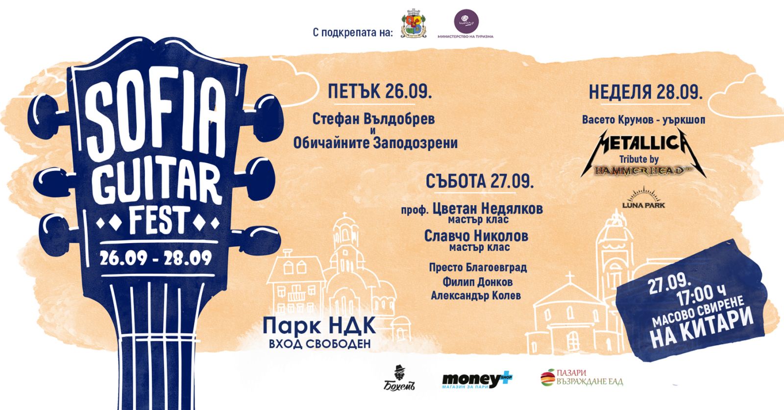 От 26 до 28 септември в парка пред НДК Sofia Guitar Fest 2025 събира Стефан Вълдобрев, Славчо Николов от Б.Т.Р., проф. Цветан Недялков и стотици китаристи за тридневен празник на музиката. Входът е свободен.