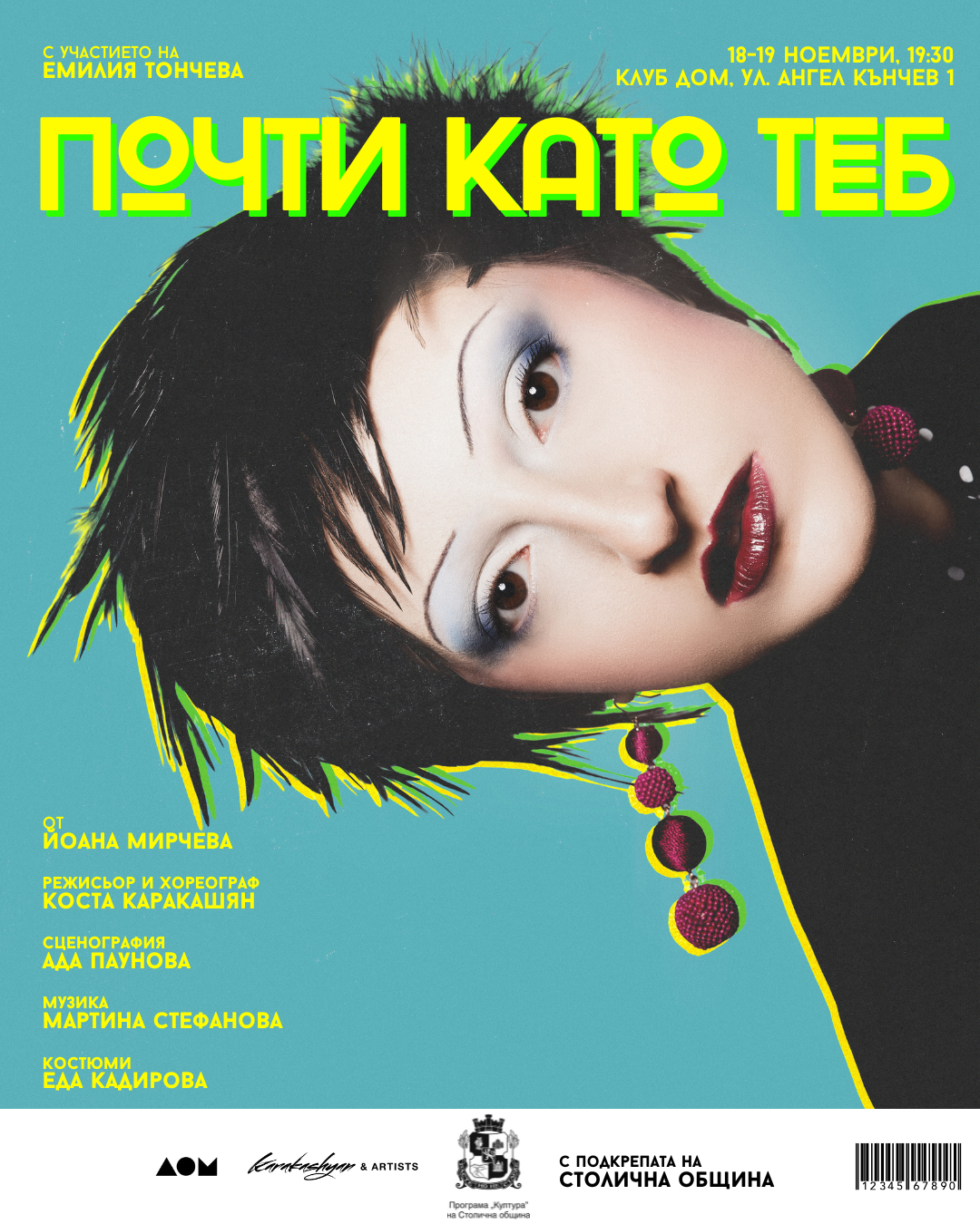 "Почти като теб" е танцово-театрален моноспектакъл на режисьора и хореограф Коста Каракашян с автор Йоана Мирчева и участието на актрисата Емилия Тончева.