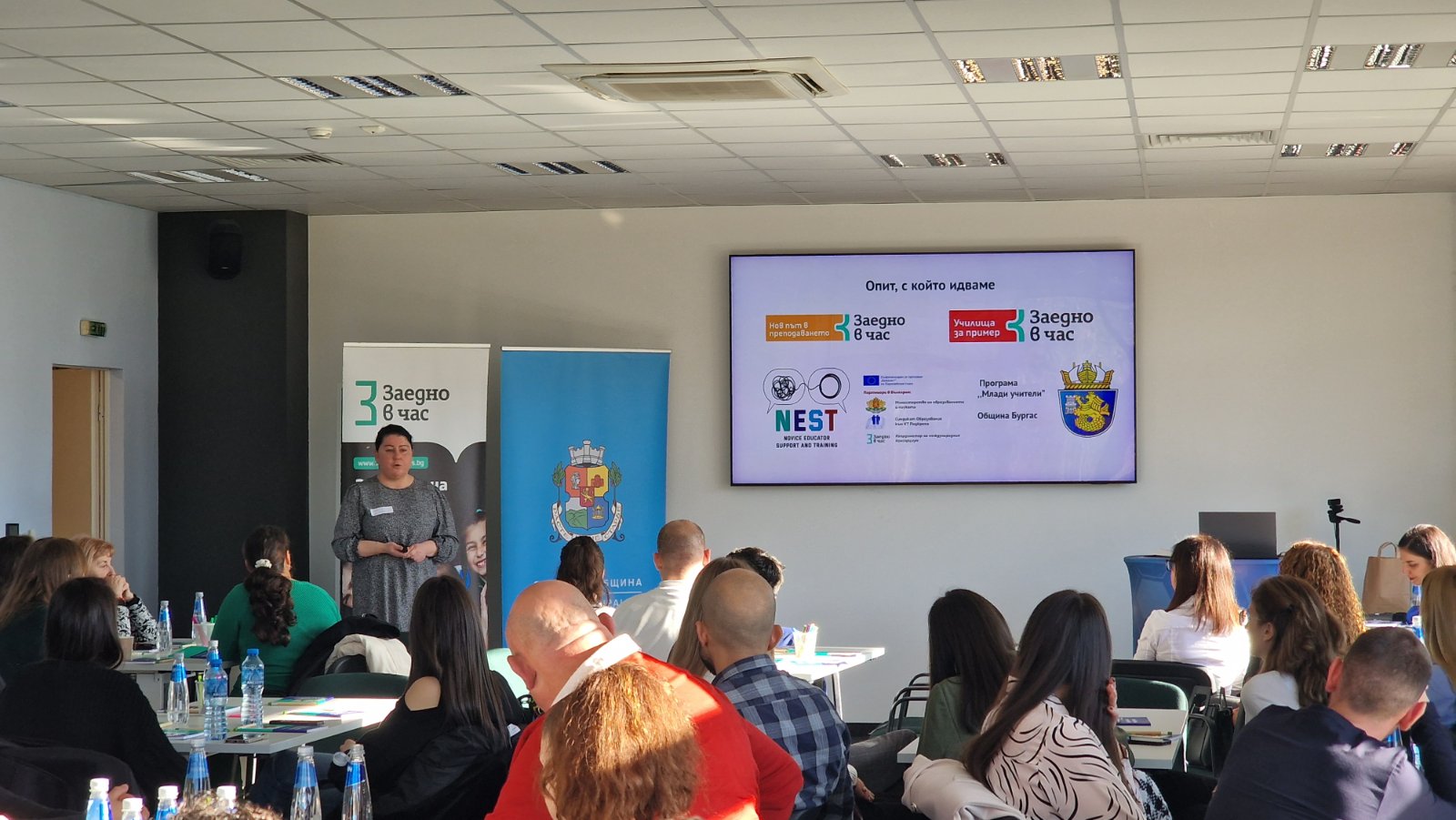Младите учители бяха поздравени и от Мирена Петрова, старши специалист „Стратегически партньорства“ в „Заедно в час“ и ръководител на обучителния екип. Тя подчерта ключовата роля на учителя за успешното развитие на учениците и очерта целите на настоящата програма - да помогне на учителите в началото на техния професионален път  да се развиват и да се чувстват подкрепени в ежедневните си дейности от свои опитни колеги.