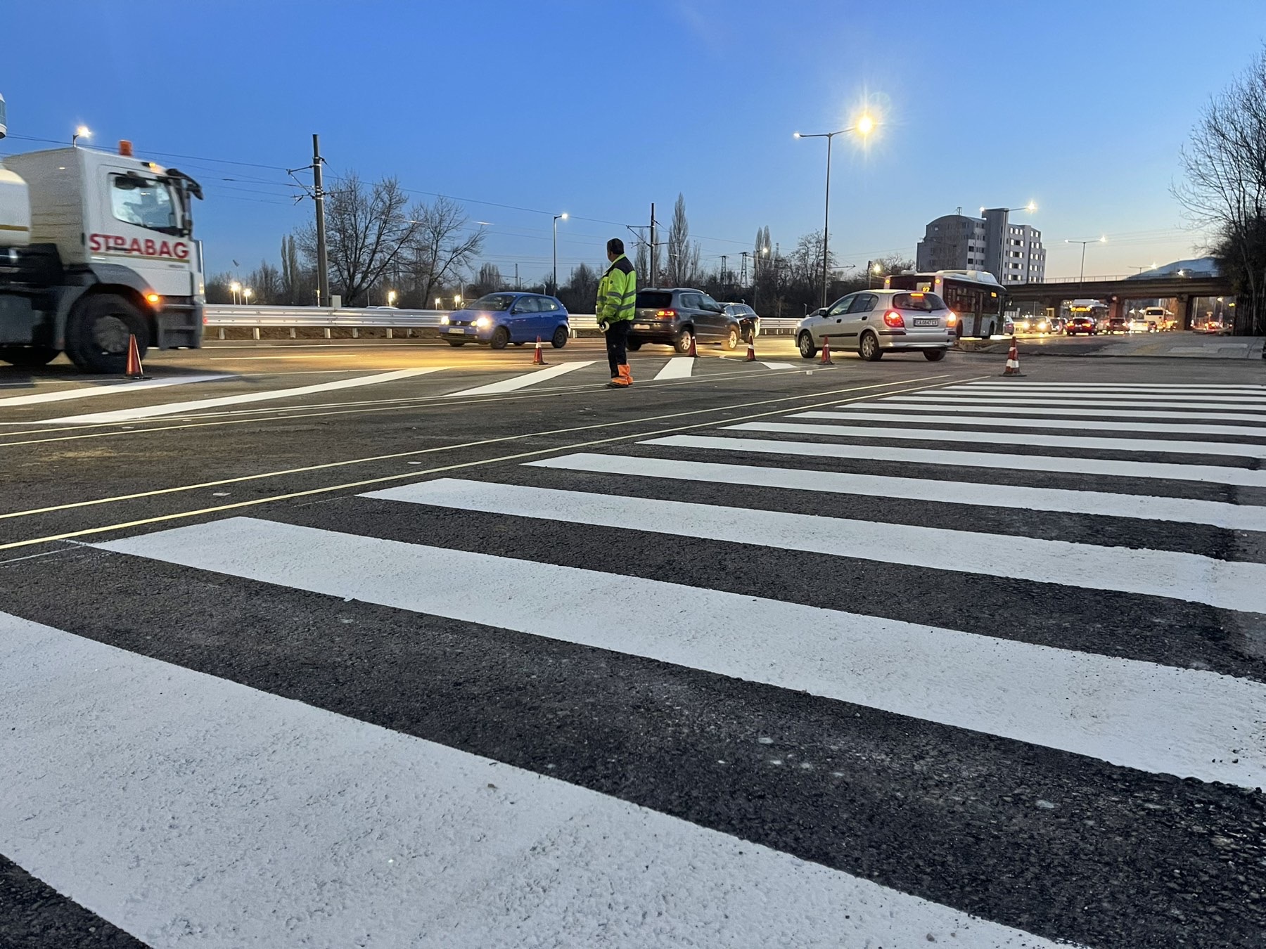 Строителните екипи вече изпълняват последния асфалтов пласт на платната и при подходящи метеорологични условия ще се направи и хоризонтална маркировка. Успоредно с това се довършват работите по релсовия път и контактно-кабелната мрежа. Още тази седмица започват и 72-часовите изпитания на новото трамвайно трасе – ключов етап преди въвеждането му в експлоатация.