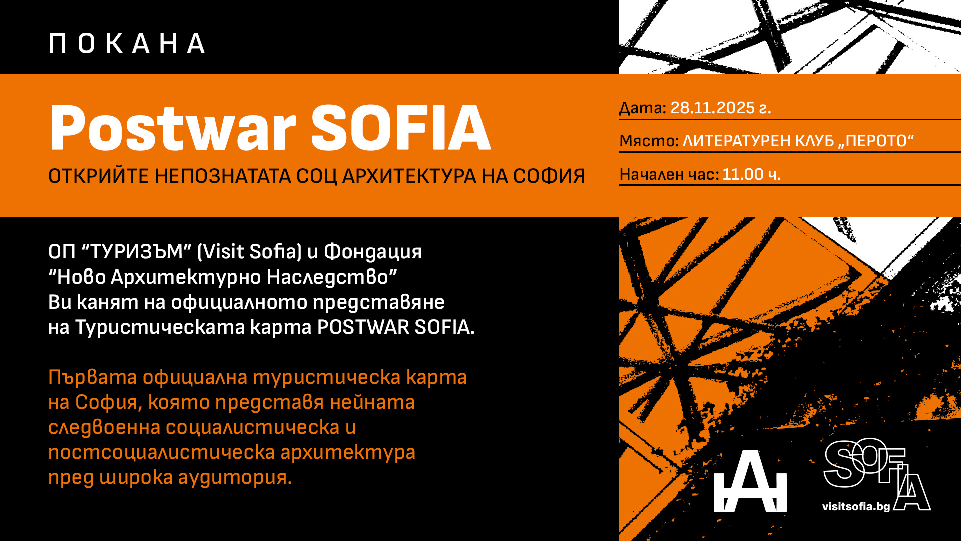 Общинско предприятие „Туризъм“ (Visit Sofia) в партньорство с Фондация „Ново архитектурно наследство“ (НАН) представят Postwar SOFIA Map – първата туристическа карта на София, посветена на следвоенната архитектура на столицата. Изданието систематично документира и представя социалистическото и постсоциалистическото архитектурно наследство на града, разкривайки неговите ключови пластове и трансформации през ХХ век.