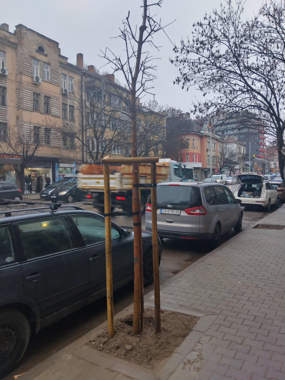 През изминалата седмица се реализира засаждане на над 25 броя нови дръвчета в посадни гнезда и зелени ивици по улици и булеварди, които да заменят вече премахнати болни, изсъхнали или опасни дървета. Засадени са фиданки по бул. „Евлоги и Христо Георгиеви“ – чинар 5 броя, ул. „Любен Каравелов“ – ясен 3 броя, бул. „Васил Левски“ – чинар 4 броя, бул. „Мадрид“ – ясен 2 броя, бул. „Христо Смирненски“ – чинар 6 броя, бул. „Витоша“ – ясен 6 броя и др.