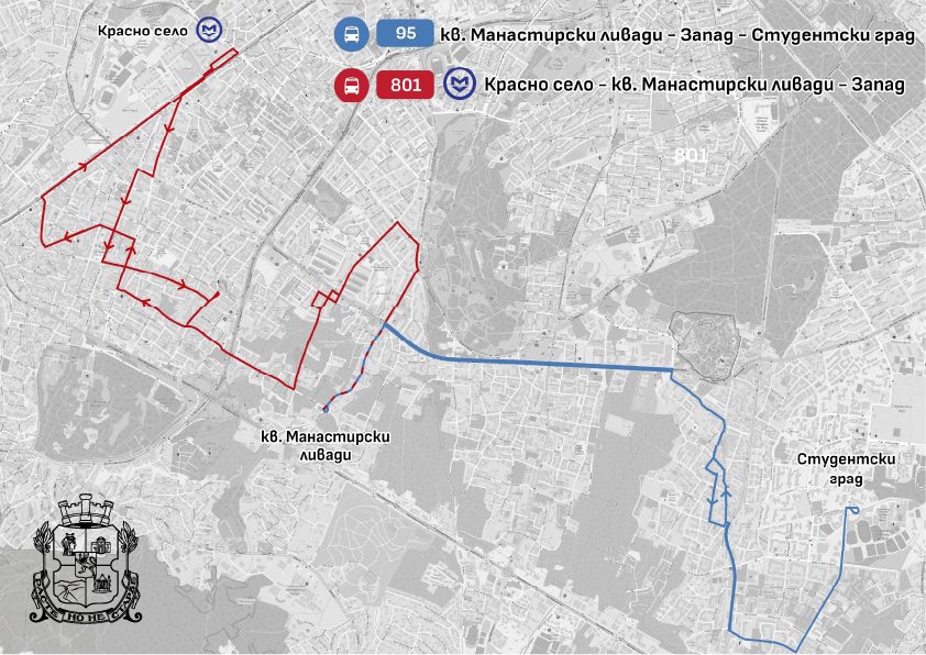 • Закрива се линия № 805 и се въвежда линия № 95, която ще свързва ж.к. „Студентски град“ и ж.к. „Манастирски ливади-запад“, като използва новоизградената инфраструктура по бул. „Тодор Каблешков“ и съществуващата БУС лента.