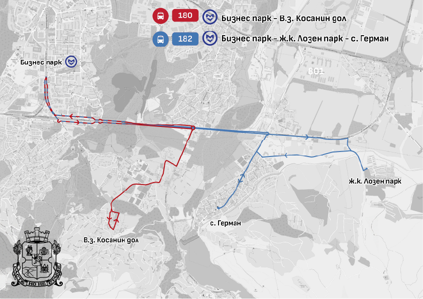 • Линия № 182 – между метростанция „Бизнес парк“, с. Герман и ж.к. „Лозен парк“.