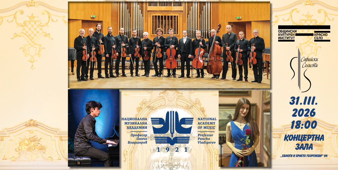 Концерт на Камерен ансамбъл "Софийски солисти" с диригент Любомир Денев – син и студенти от Национална музикална академия "Проф. Панчо Владигеров"