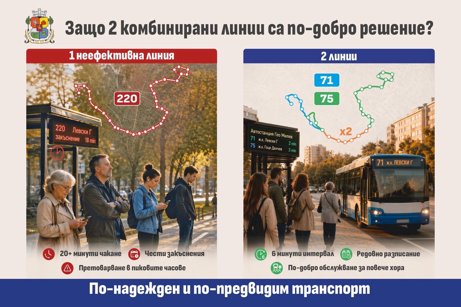 Промяната цели да осигури по-често, по-предвидимо и устойчиво придвижване през ключови градски участъци от „Левски“ и „Гео Милев“, през „Г. М. Димитров“, новодовършения „Т. Каблешков“ и кв. „Овча купел“.