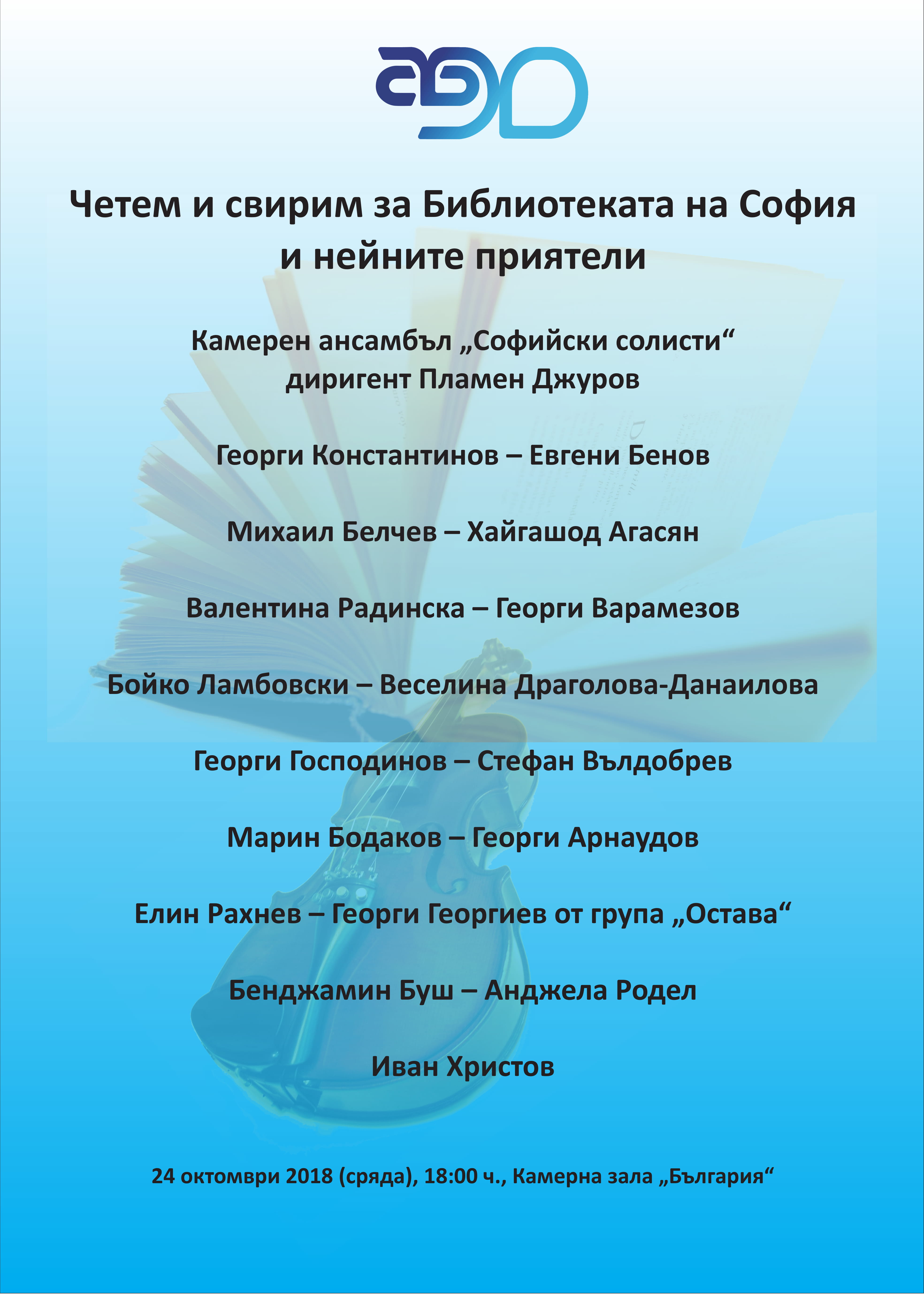 24.10.2018 г., 18:00 ч., камерна зала „България“, ул. „Аксаков“ № 1