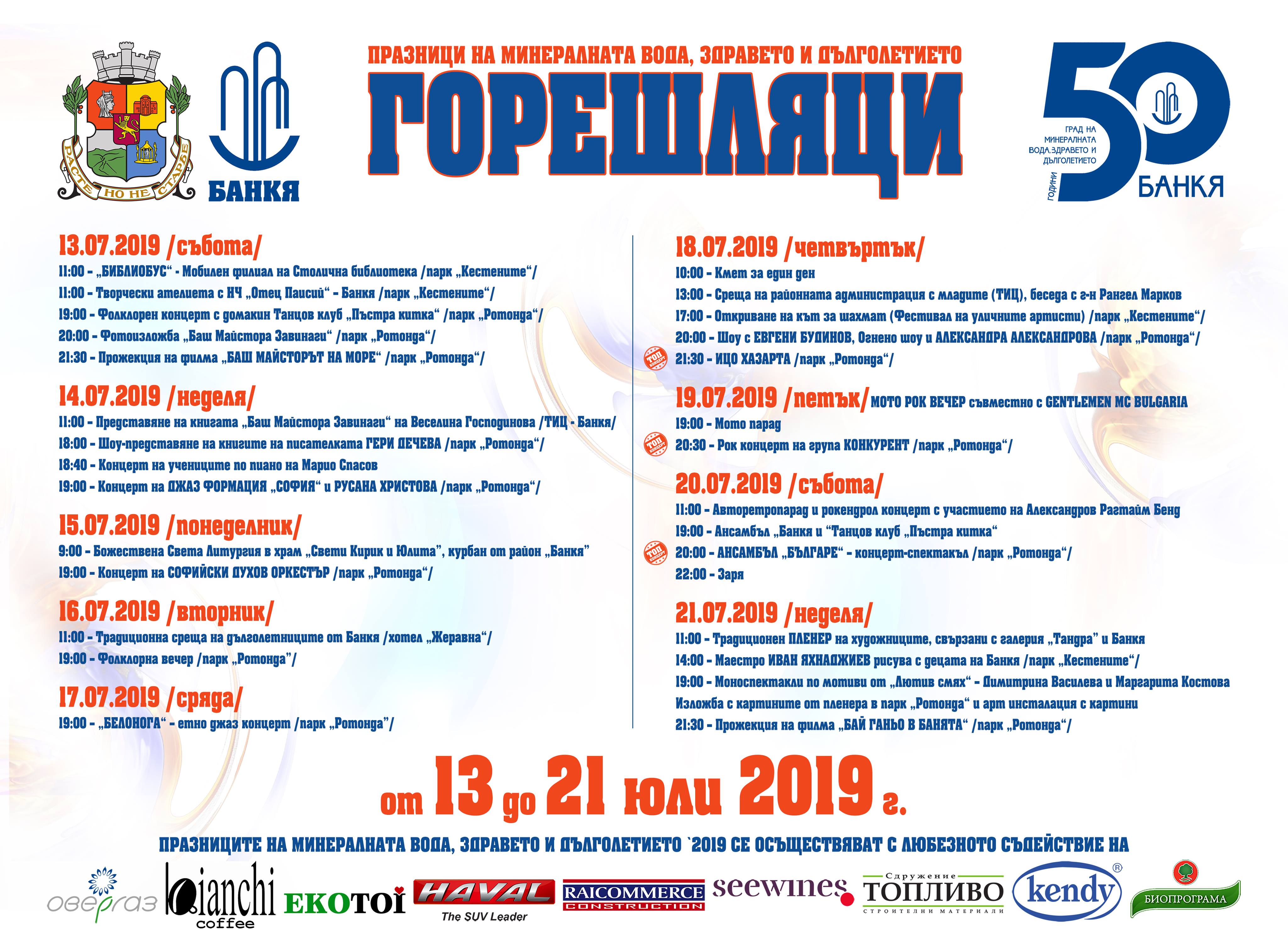 Инициативата е по повод отбелязването на традиционните Празници на минералната вода, здравето и дълголетието Горешляци '2019, както и 50-годишния юбилей на Банкя като град. В непосредствена близост до Библиобуса ще има творческа работилница, организирана от район „Банкя“ съвместно с НЧ „Отец Паисий“.