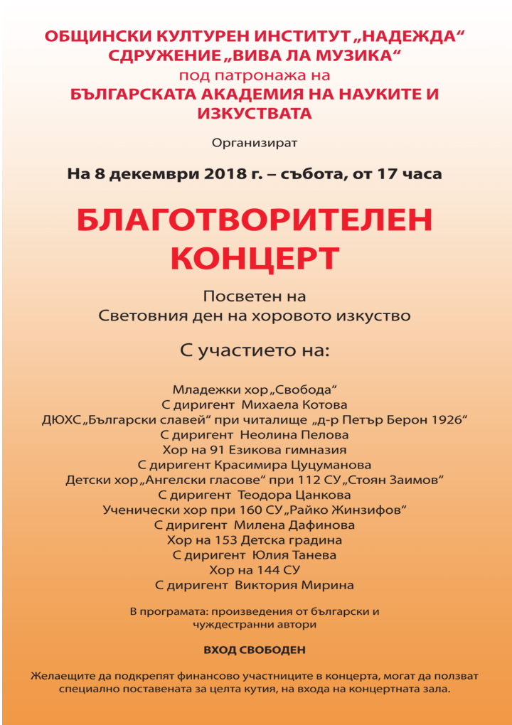 Благотворителен концерт, посветен на Световния ден на хоровото изкуство