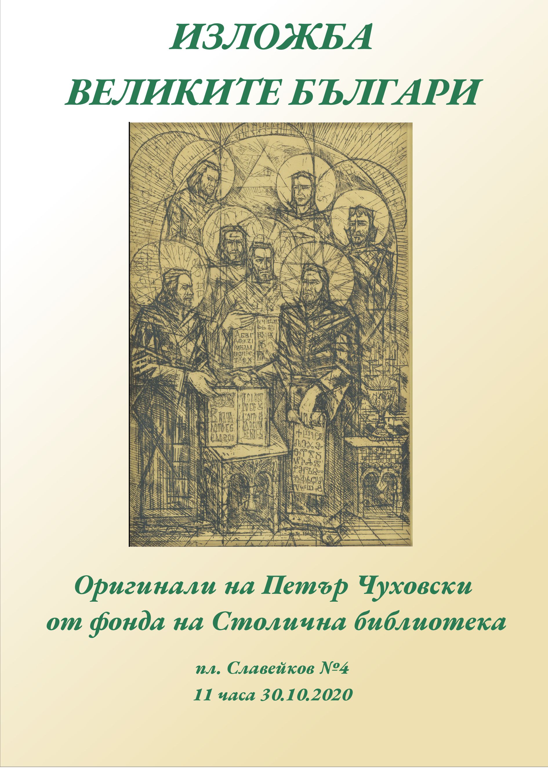 На 30 октомври от 11 часа проф. Михаил Неделчев, член на Обществения съвет на библиотеката, ще открие изложбата с графики „Великите българи“ и документалната изложба „Първи будители на българския род“ с ценни издания от фонда на библиотеката.