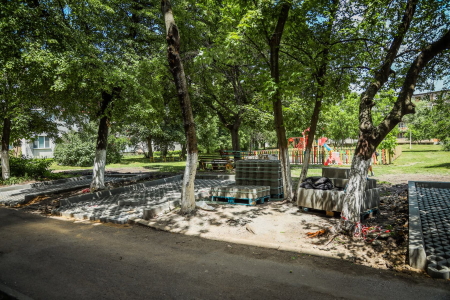 Настилката на паркинга ще е с бетонови паркингови елементи върху пясъчна основа, като ще се изпълни засипка на отворите с пясък и хумус.