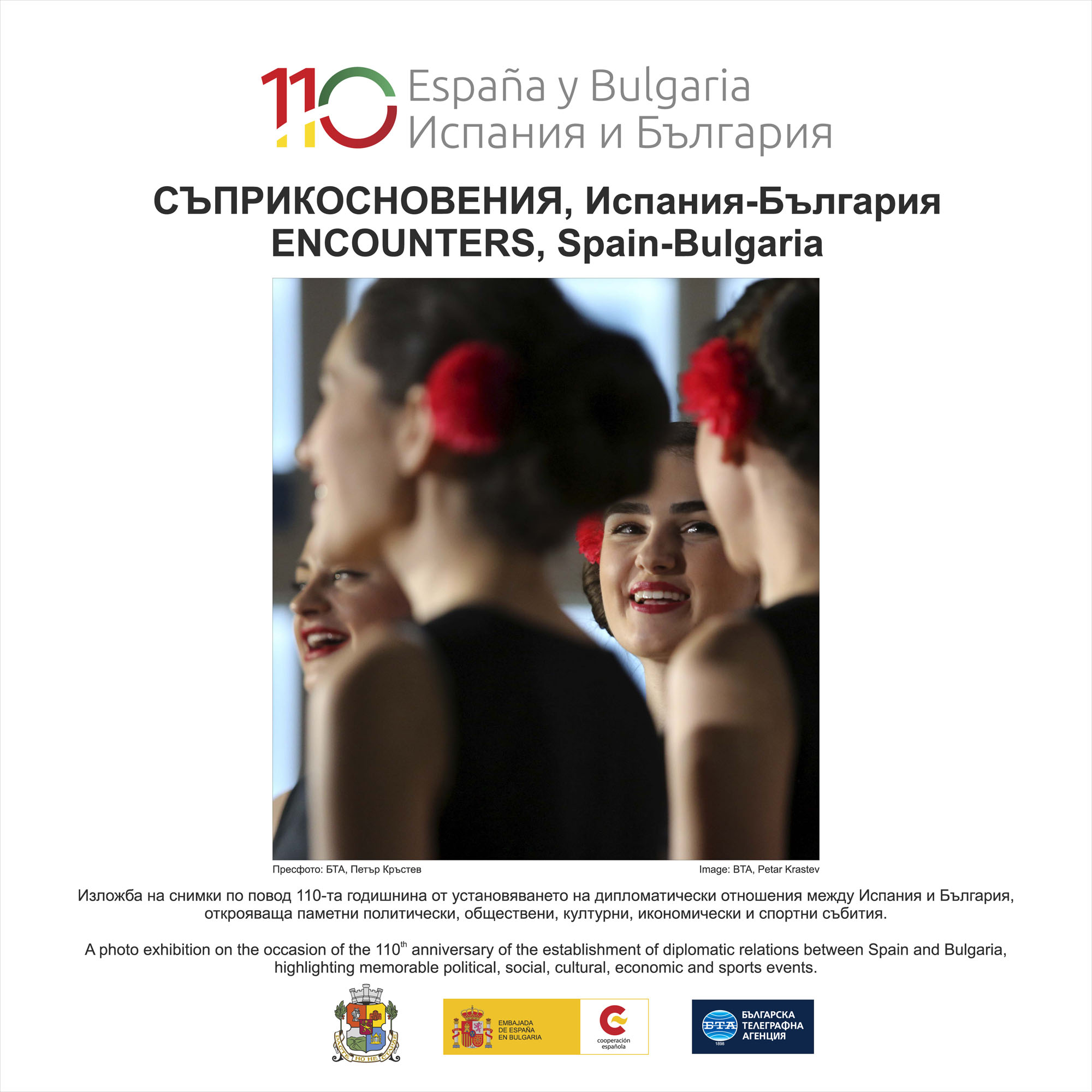 26 снимки от архивите на БТА илюстрират политическите, обществените, икономическите, културните и спортни аспекти от отношенията между България и Испания, наблягайки върху човешките отношения. Изложбата може да бъде посетена до 28 ноември т. г.