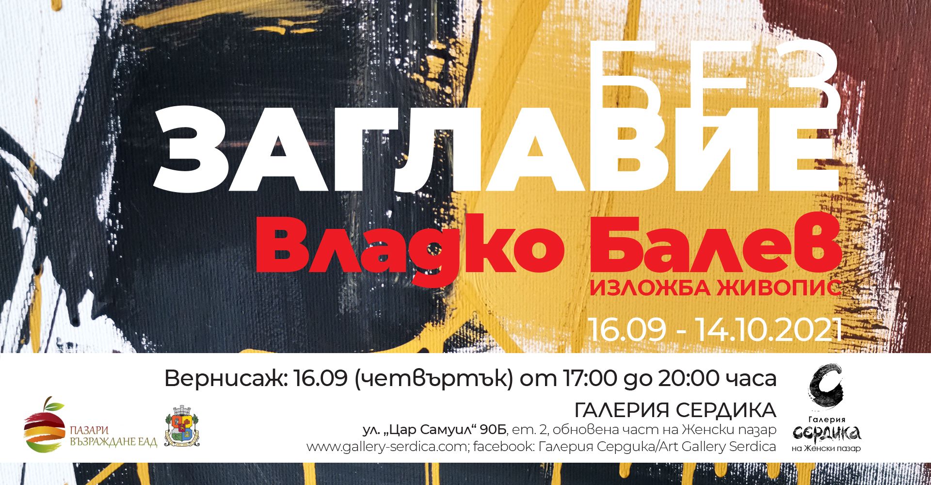 Вернисаж: 16 септември (четвъртък) 2021 г. от 17:00 до 20:00 часа