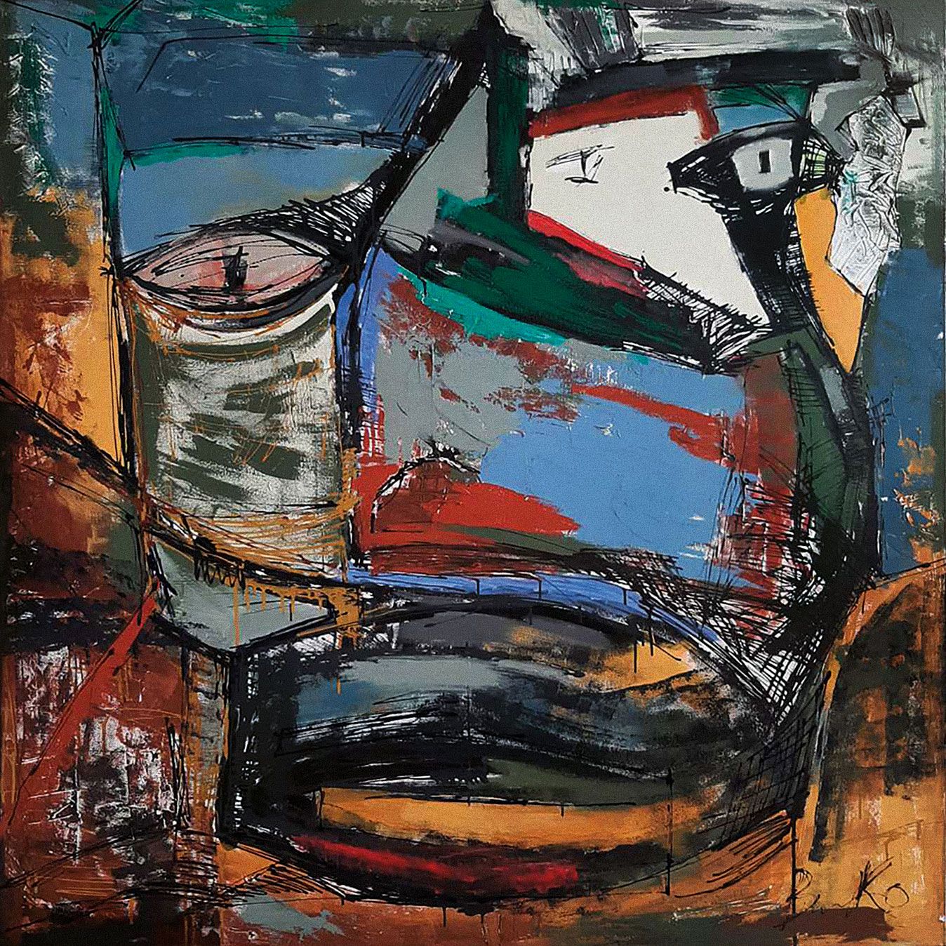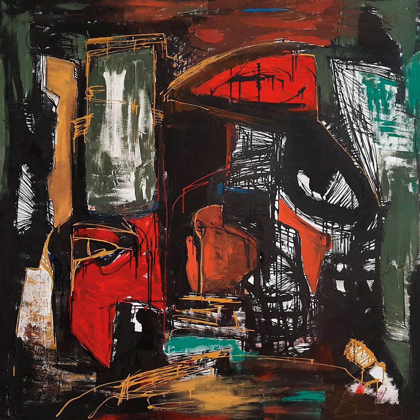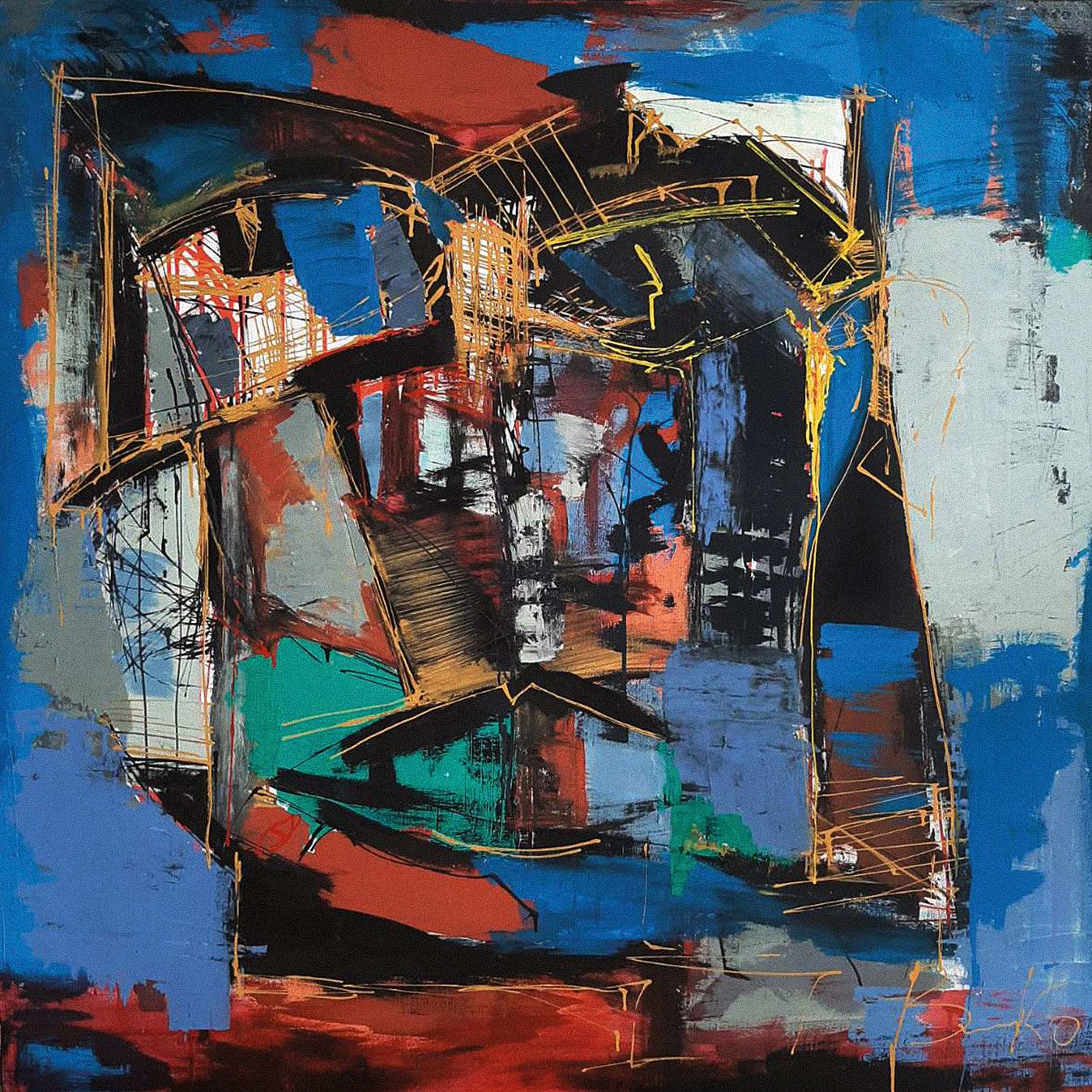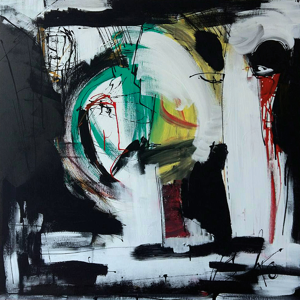 Картините на Владко Балев, които са подредени в столичната галерия „Сердика“, са различни по големина платна в квадратна форма, изпълнени с техниката акрилна живопис.