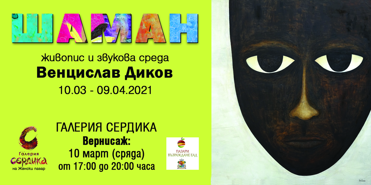 Галерия "Сердика" представя „Шаман“ – живопис и звукова среда на Венцислав Диков. Изложбата ще може да се види от 10 март до 9 април 2021 г. в артпространството на Женски пазар при спазване на всички противоепидемични мерки.