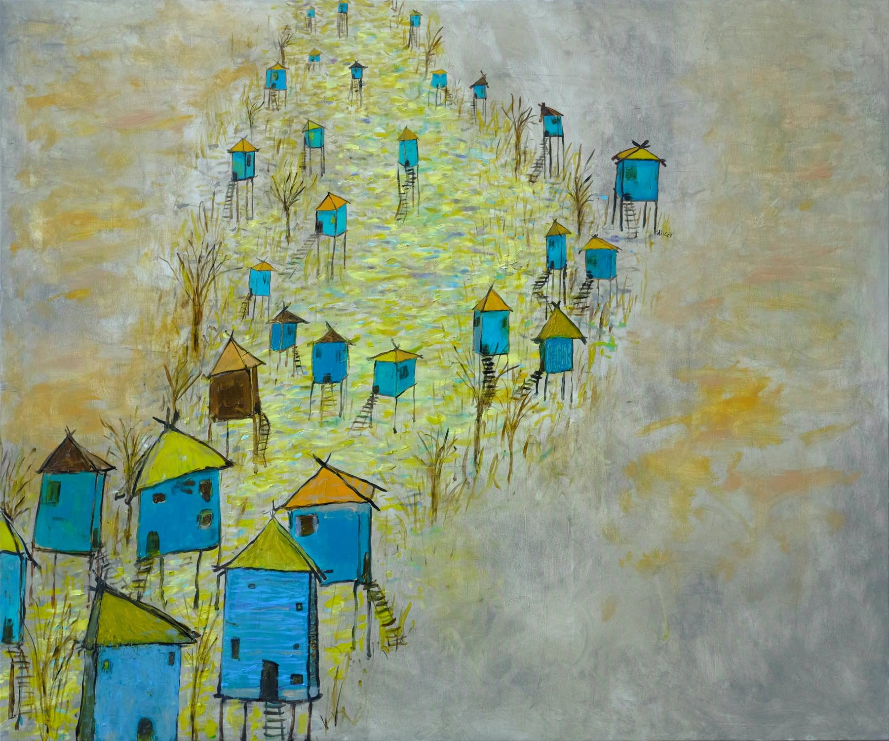 Венцислав Диков преоткрива мистичната роля на твореца, който чрез звук и образ трансформира възприятията ни. Изследва връзката на първичното и сакрално минало с настоящето. Потребността на съвременния градски човек от среща с необяснимото. Живописното платно като магически акт на въздействие върху реалността. Първичната неопитомена сила на цветовете, вибрациите и формите. Творческият процес като магически акт, ритуал. Звуци, тонове, тембри, нюанси, музикални фрагменти се свързват по безброй начини с цветовете и образите в живописните платна: животни на силата, хора във всевъзможни цветове, съновидения, лодки пътуващи между световете. Умът е пренаситен: интерпретацията спира. Отключва се креативното, настъпва прилив на творчески идеи. Посетителят на тази изложба се превръща в съавтор, творец.