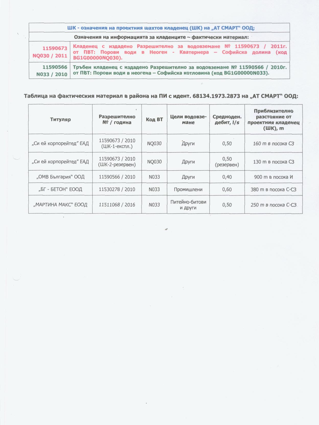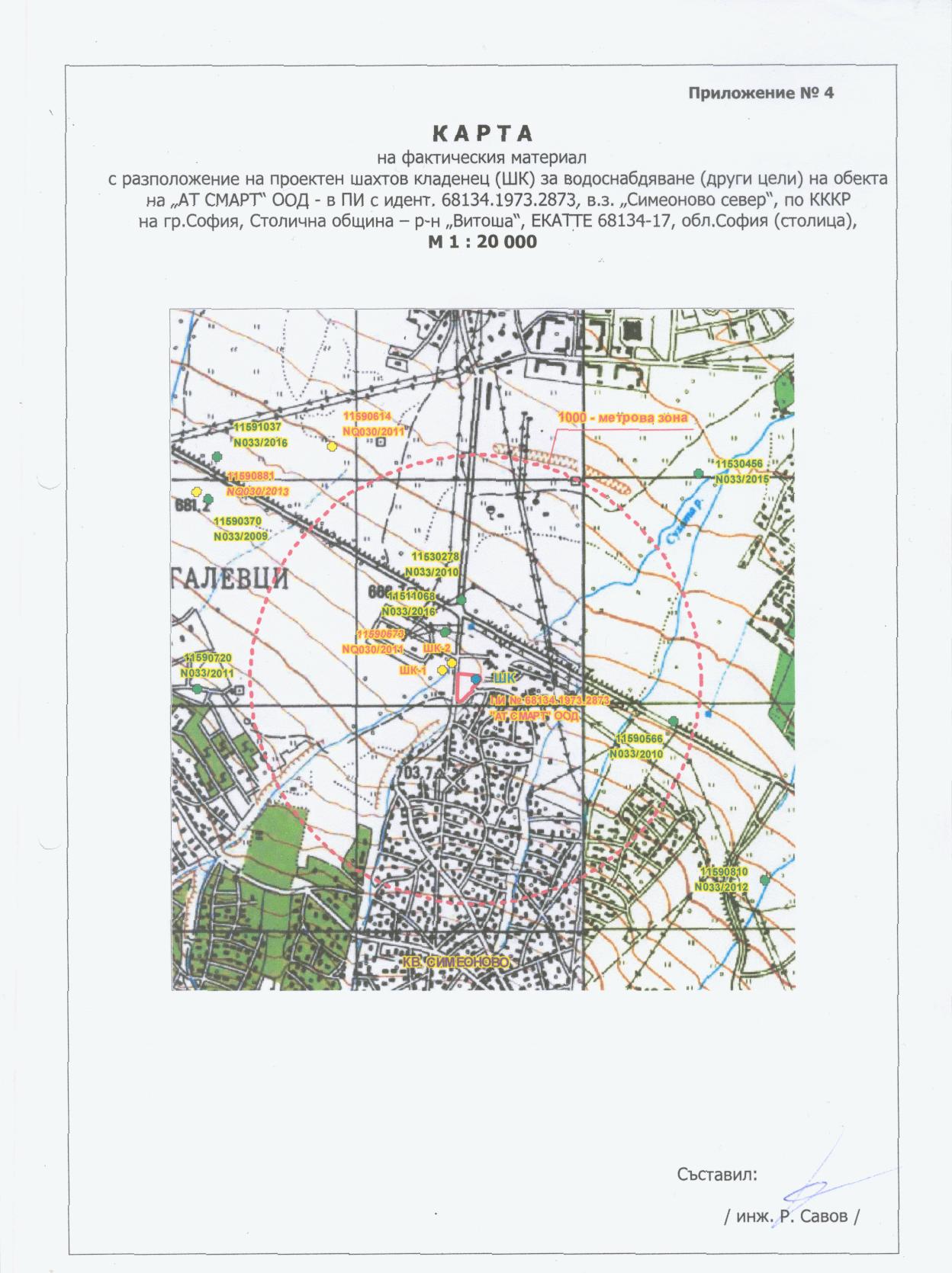 Местоположение: Шахтовият кладенец ще бъде изграден в север – североизточната част на имота в ПИ с идент. 68134.1973.2873, в.з. „Симеоново-север", по КККР на град София, Столична община – район „Витоша", ЕКАТТЕ 68134-17, област София (столица).