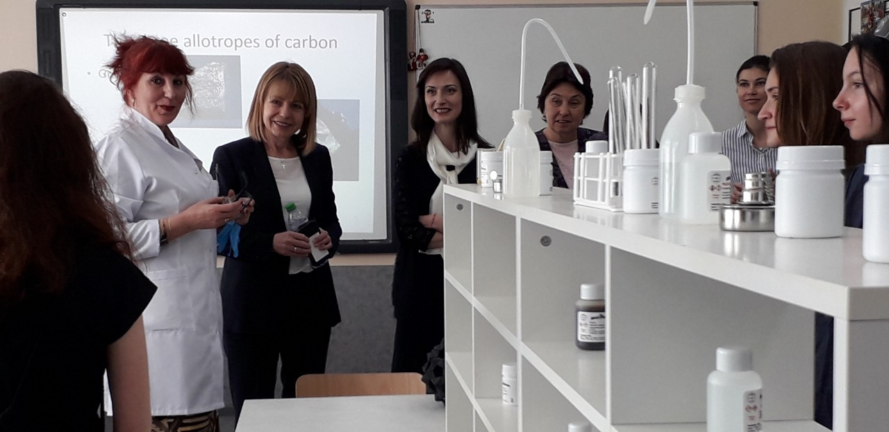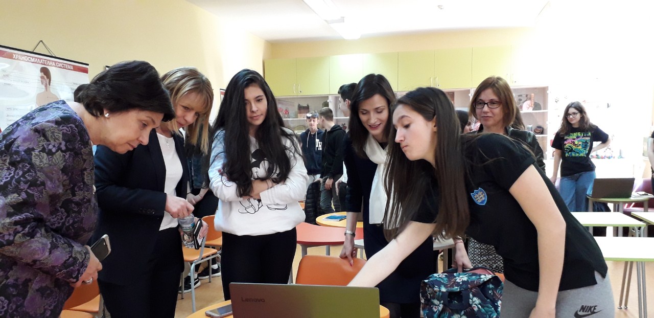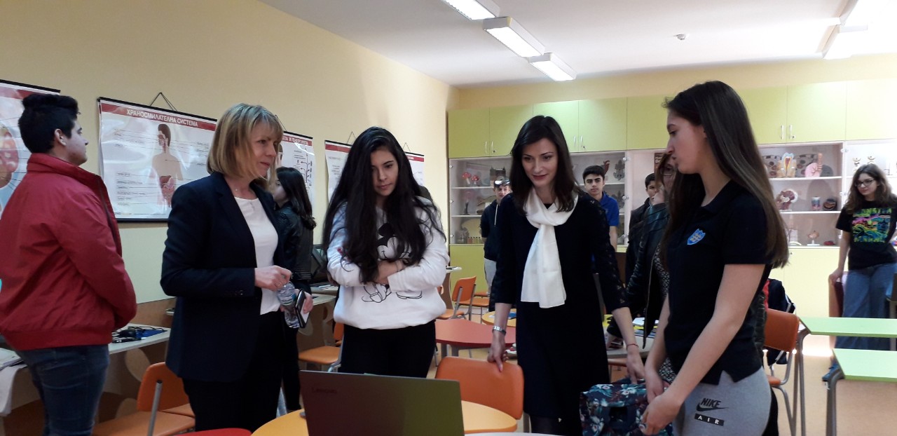 По време на срещата си с учители и ученици от гимназията двете имаха възможност да присъстват на час по химия и биология и да разгледат STEM центъра в училището. Учениците представиха възможностите на новите технологии в училището и удоволствието си да учат в иновативна среда.