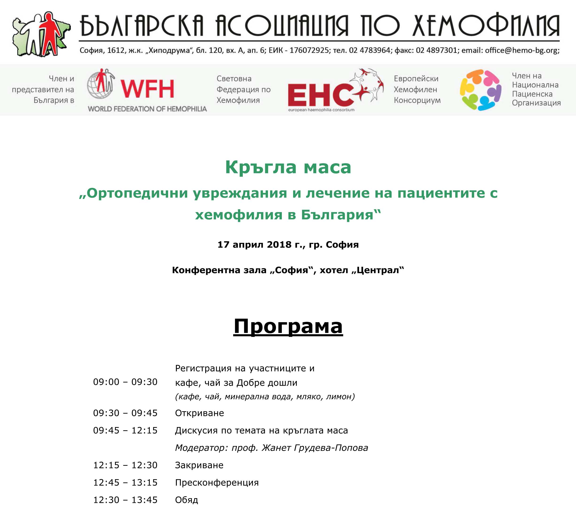 На 17 април Българската асоциация по хемофилия отбелязва Световния ден на хемофилията с кръгла маса на тема: „Ортопедични увреждания и лечение на пациентите с хемофилия в България“. А на 21 април 2018 г. Асоциацията за 3-та поредна година кани всички да се включат във велопоход „Заедно“ в подкрепа на хората с хемофилия. Социалноспортното събитие стартира точно в 11:00 ч. едновременно в 4-те най-големи града у нас (София, Пловдив, Варна и Бургас) и ще премине под патронажа на Датското посолство в София и Министерство на здравеопазването.