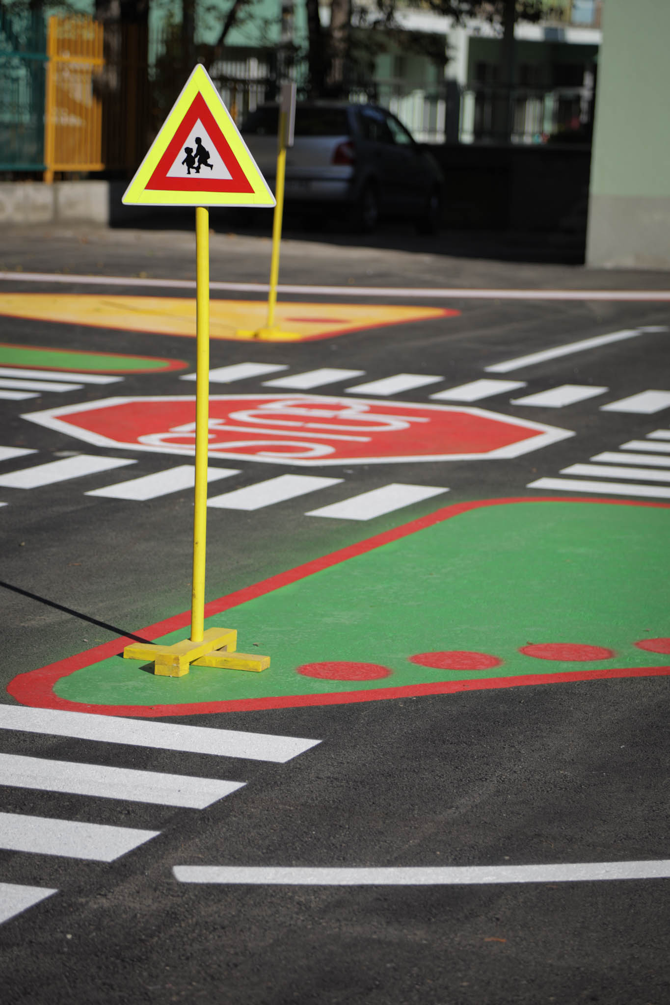Пътни знаци, пешеходни пътеки, места за пресичане. Всичко това може да се види в двора на една от столичните детски градини, където децата ще се обучават на правилата за безопасност за движение по улиците.