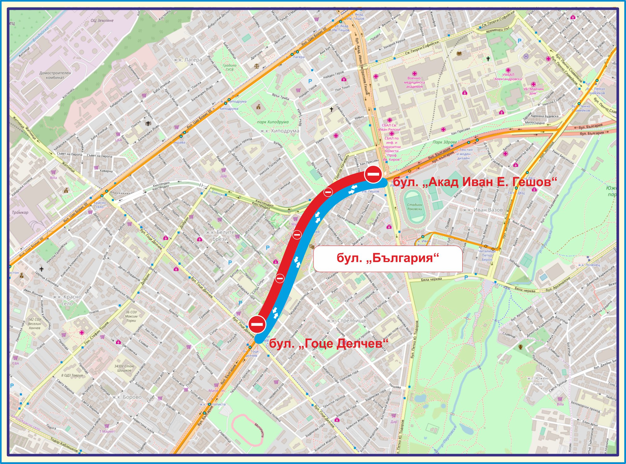 Продължава работата по другите ни обекти. От неделя, 12 август, ще започне подготовката за ремонта на бул. “България“, като от понеделник ще започне реално работата по платното в посока "Бояна" между бул. “Гешов“ и бул. “Гоце Делчев“. Платното ще е затворено изцяло, а движението ще се извършва двупосочно в другото пътно платно. Призоваваме хората да използват алтернативни маршрути като бул. “Цар Борис Трети“, бул. “Черни връх“.