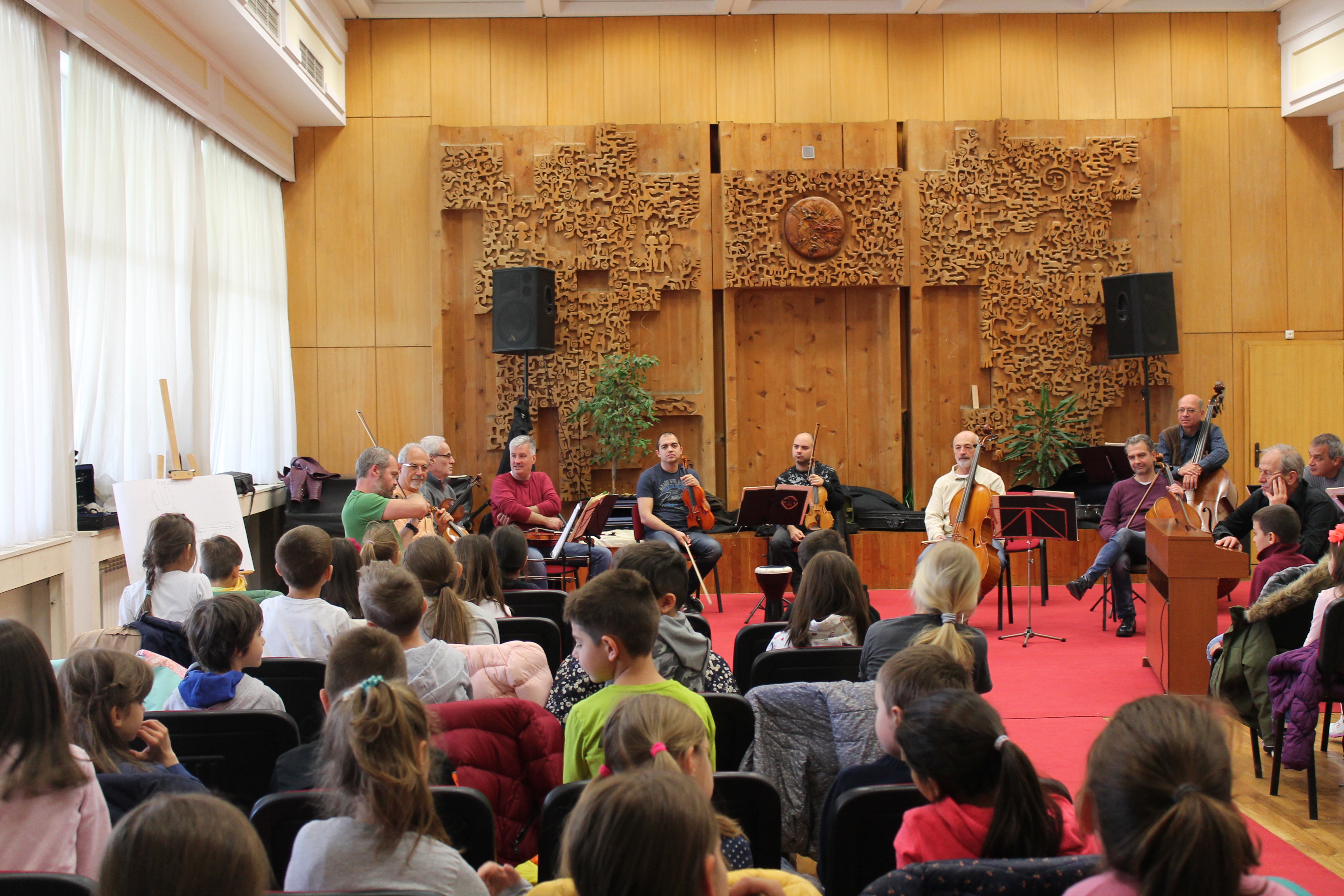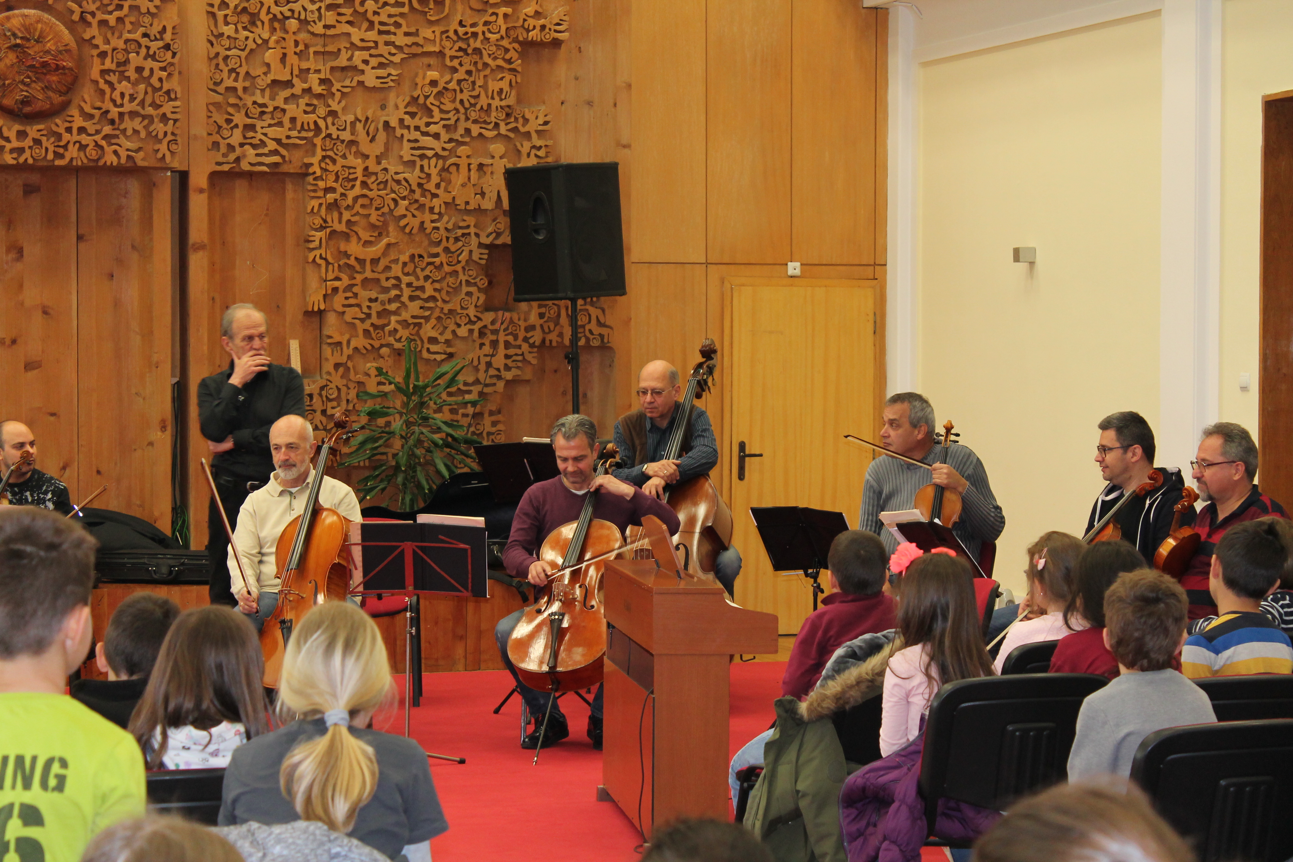 Проф. Пламен Джуров изнесе лекция, а Камерен ансамбъл „Софийски солисти” демонстрира своето невероятно изпълнение на камерна музика и накара децата да живеят и дишат буквално с всеки тон.