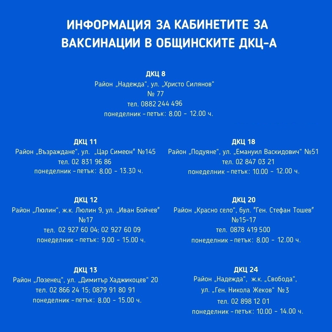 - В общинските ДКЦ-та с номера 8, 11, 12, 13, 18, 20 и 24. Информация ТУК