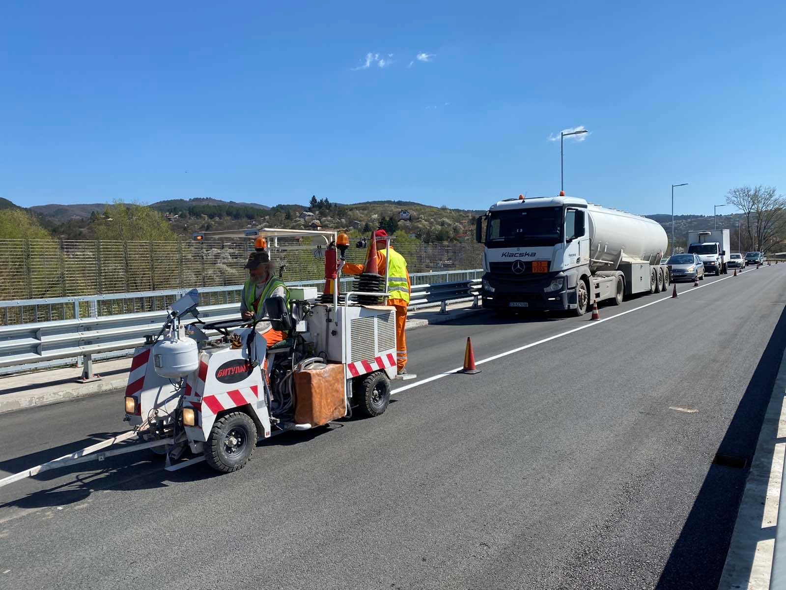 „Започнахме полагането на маркировката на пътните платна на моста. Предстои ни да извършим възстановителни мероприятия по прилежащите на съоръжението тротоари. След привързване на електрическото табло за уличното осветление мостът ще бъде окончателно приет и пуснат в експлоатация“ – това обяви по време на проверка на строителните дейности зам.-кметът по строителството в СО инж. Ангел Джоргов.