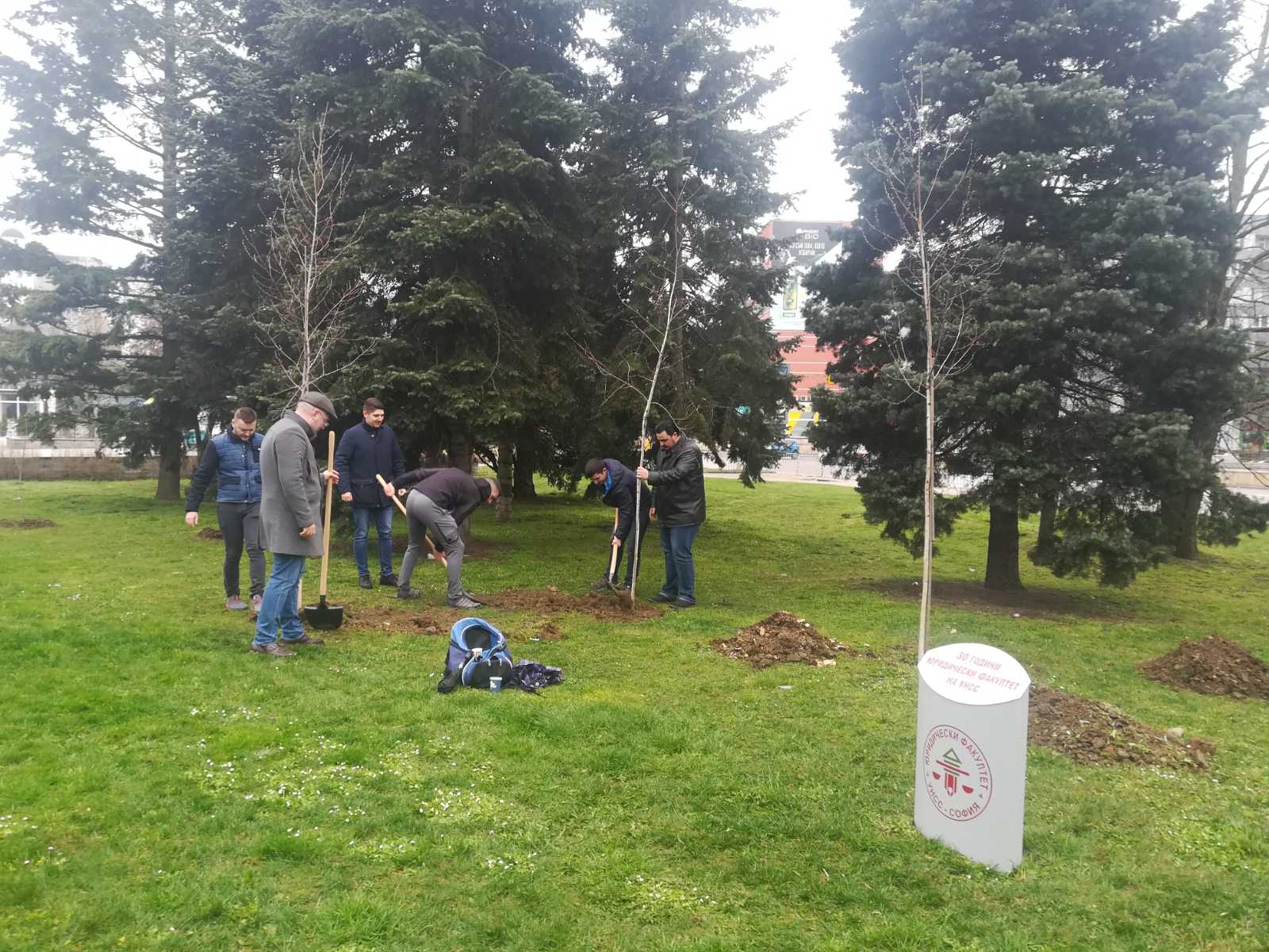Преподаватели от Юридическия факултет към УНСС засадиха 22 чинара и 11 брези в Южен парк. Повод за инициативата е 30 години от създаването на Юридическия факултет към УНСС, а събитието се осъществи под егидата на ректора проф. Димитър Димитров и декана д-р Захари Торманов.