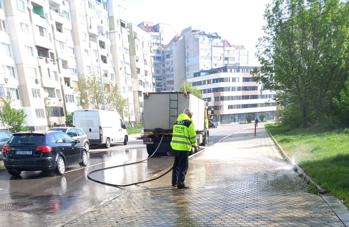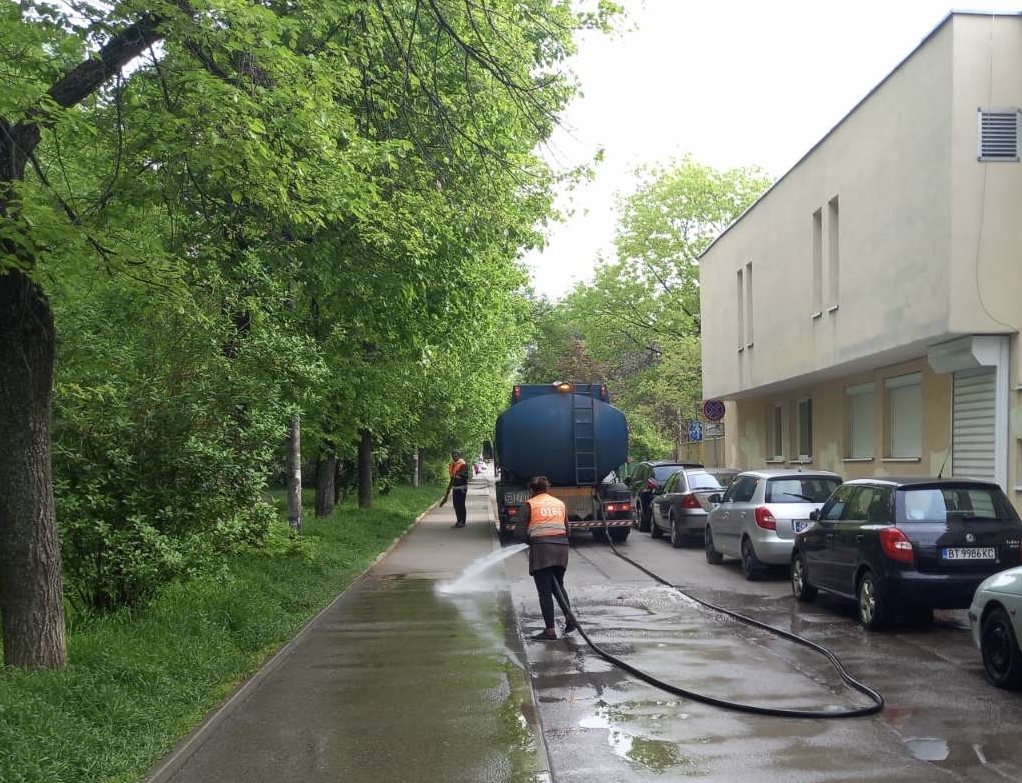 Миене на пътните платна на улици и булеварди, тротоари и пешеходни пространства продължава на територията на Столична община. Дейностите се извършват с помощта на автоцистерна с маркуч както през деня, така и нощем и се контролират от екипите на Столичен инспекторат.