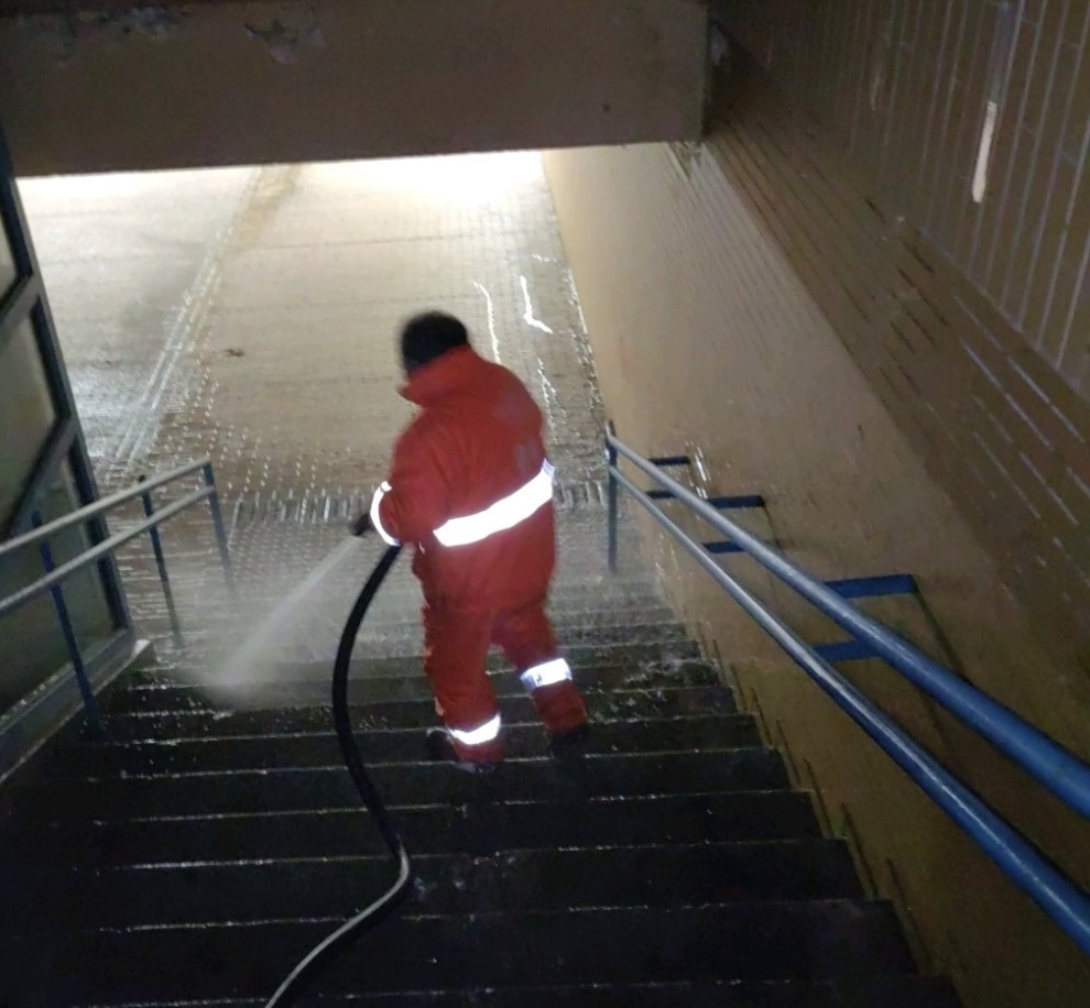 През нощта е извършено миене и на пешеходния подлез при Централна жп гара.