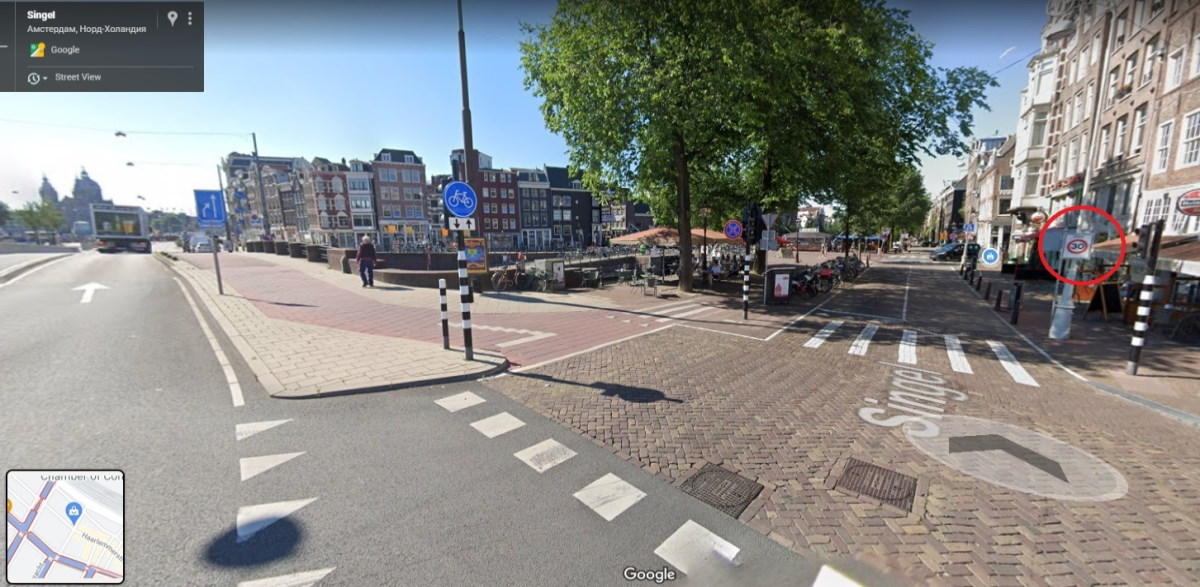 Примери от Амстердам и Берлин за въведени "успокоени зони" – зона 30 км/ч. (със знаково стопанство), от които е видно и че запазват ограничението от 50 км/ч. по основните улични артерии.