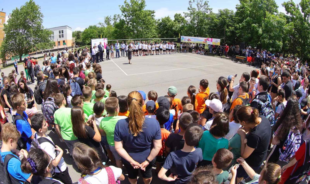 С истински празник с множество деца в двора на 81. СУ "Виктор Юго" в София стартира официално мащабният проект „С волейбол на училище“. Инициативата на Българска федерация по волейбол (БФВ) в партньорство със Столична община, Регионално управление на образованието (РУО) София-град и с подкрепа от Европейската конфедерация по волейбол (CEV) търси възможности за запалване на интереса на българските деца към обичаната игра и най-успешния отборен спорт у нас. За волейболните клубове пък това ще бъде пътека за селекция и привличане на таланти с желание и подходящи физически данни.