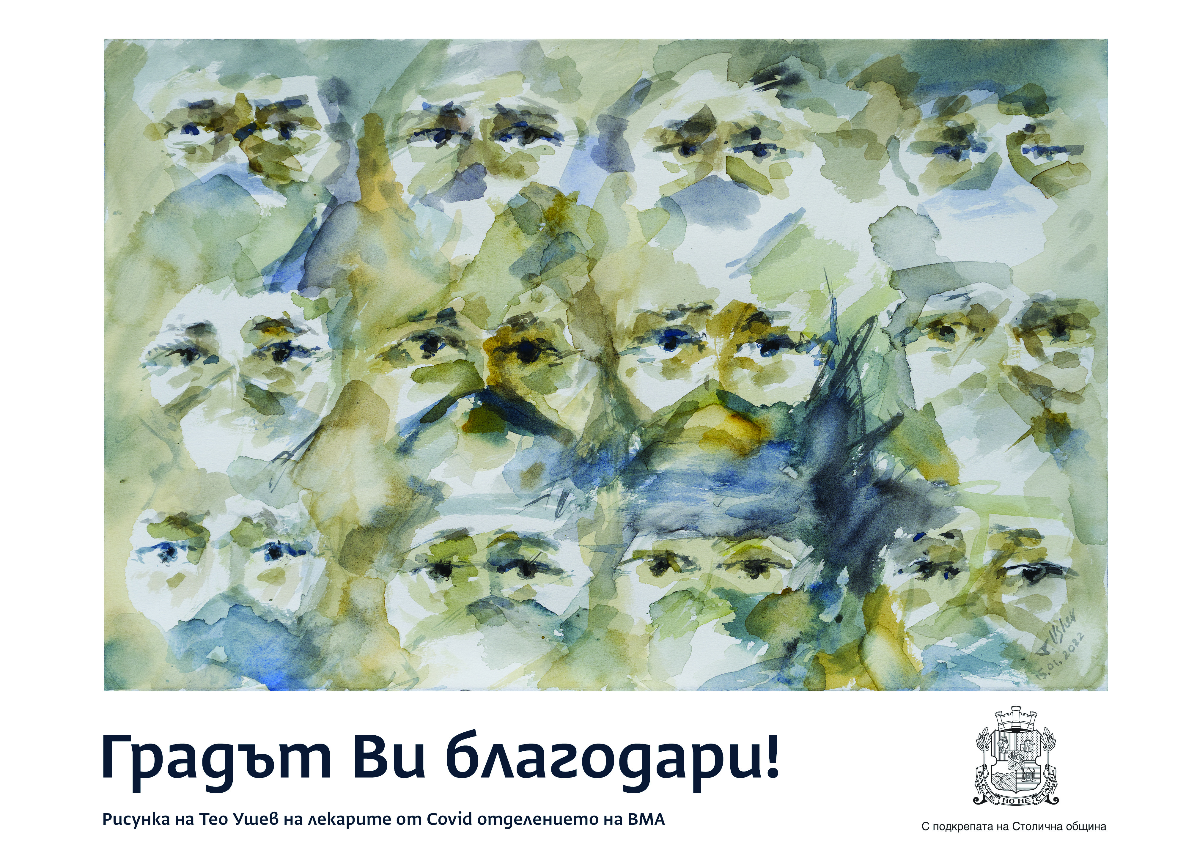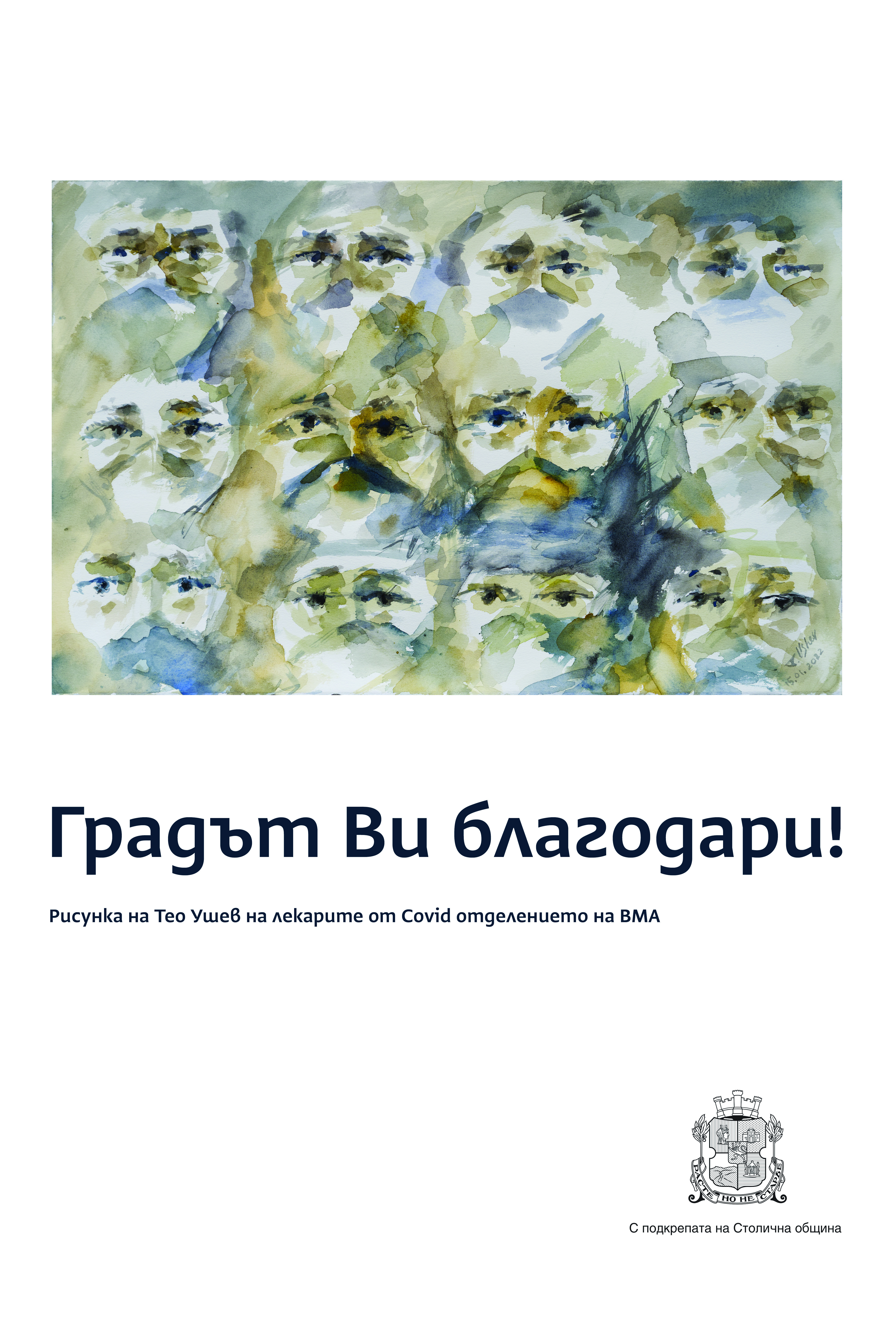 Лицата на лекари, сестри, санитари и стажанти от ковид отделението на Военномедицинска академия бяха нарисувани от Теодор Ушев през януари, докато той беше техен пациент.