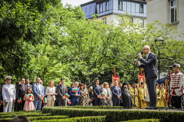 И само на 24-ти май всички сме тук и споделяме едно и също, неподправено вълнение. И не минаваме поотделно, а вървим заедно. Изкушавам се да кажа – към светла бъднина.